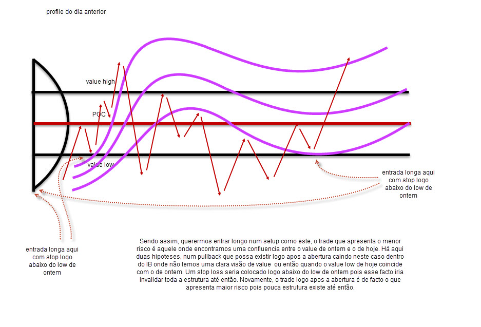 Dependendo onde o mercado abre em relação ao dia anterior, e aqui, nos futuros há a vantagem da overnight session que te permite ter uma leitura mais elaborada para a abertura do pit, o tipo de abertura, hoje por exemplo foi do tipo open auction onde os preços andam por todo o lado mas sempre centrados no valor da abertura, podes ter uma melhor leitura de como o dia poderá correr e de te posicionares correctamente, a favor do value.