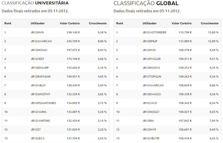 Gostaria que me me explicassem como é que o primeiro classificado da classificação universitária ter 248.140 euros e apenas uma valorização de 9.58% enquanto que o primeiro classificado global tem 115.799 e 15.80% de valorização?