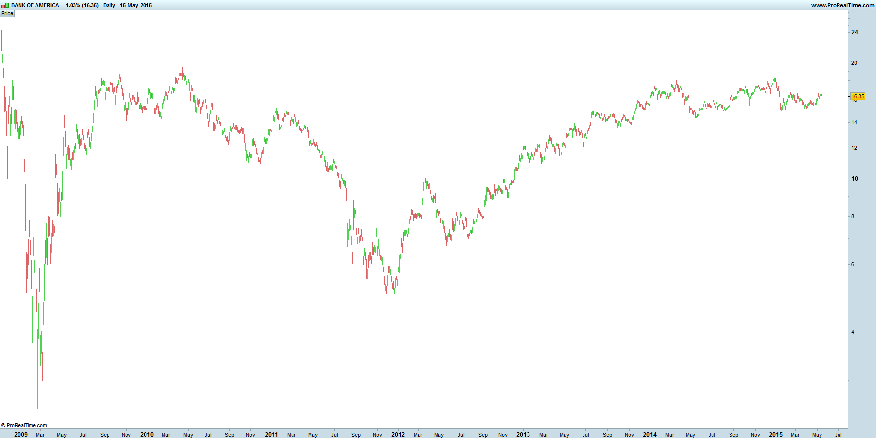 Bank of America Corp, 16ª maior capitalização bolsista norte americana e segundo maior banco por activos. O produto bancário estabilizou e o nível de imparidades começou a baixar (melhor margem bruta dos big four)