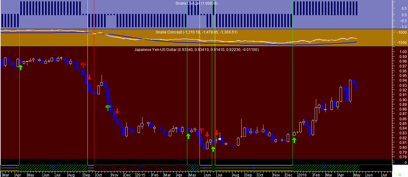 Outro sinal de alteraçao da posiçao ocorreu hoje neste sistema no câmbio IeneDollar, através de uma alteraçao do sinal na escala diária que passou de comprado a vendido.