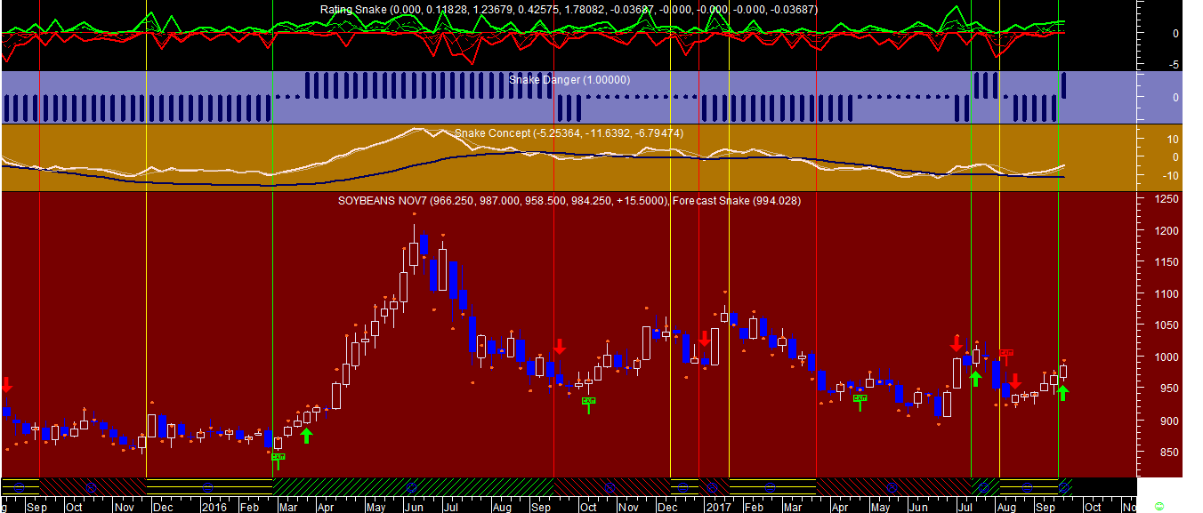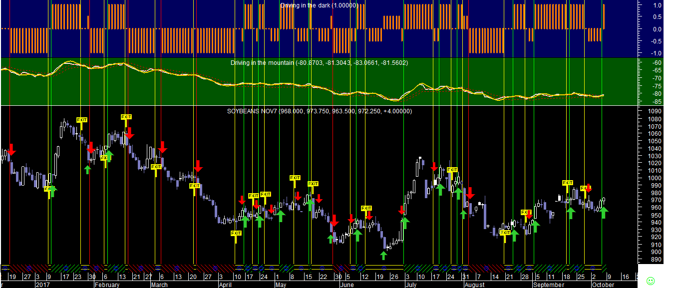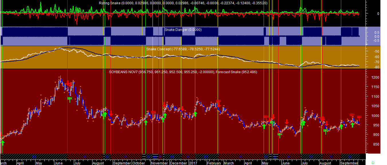 Segue abaixo um dos gráficos dos sistemas de trading na Soja e a comparaçao semanal entre as forças posicionais na carteira ativa de hedge-fund.