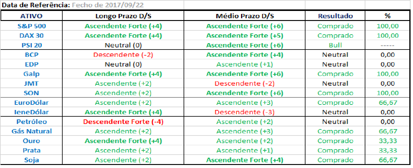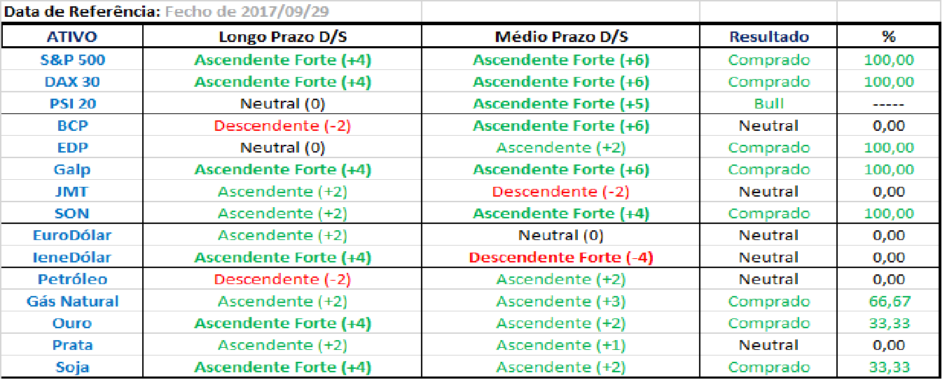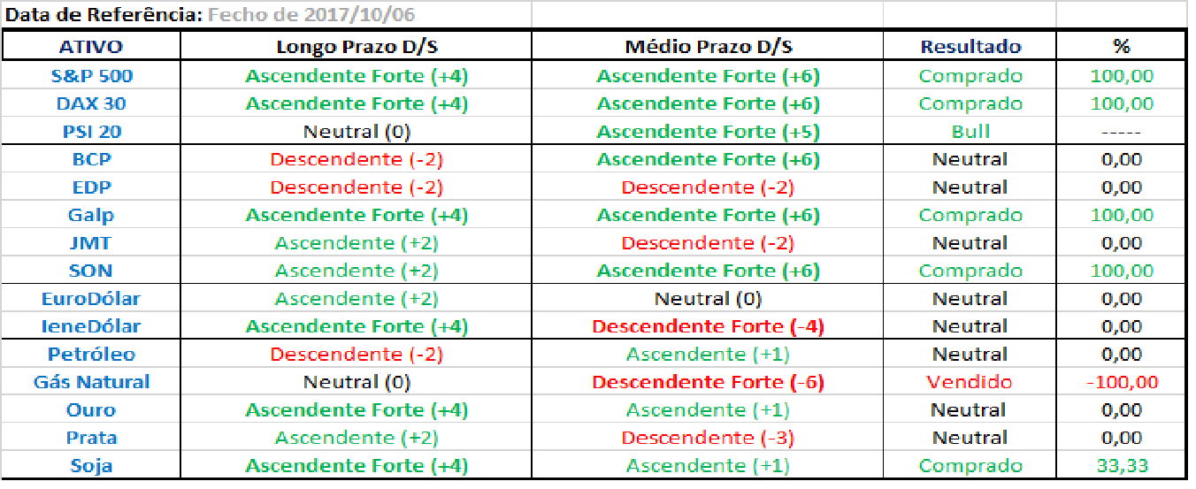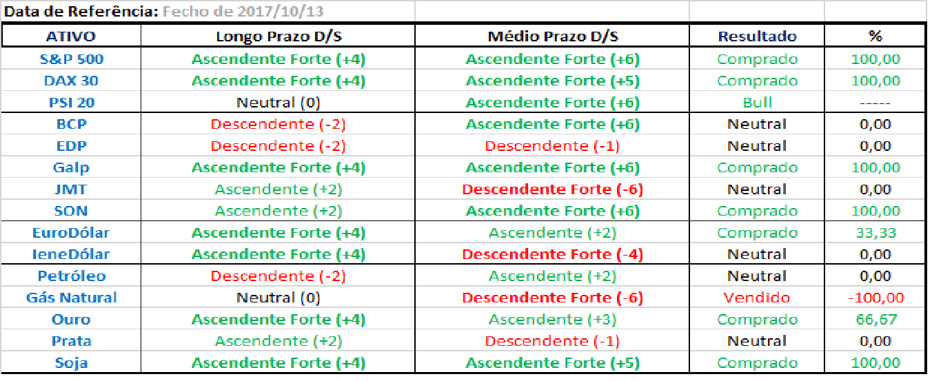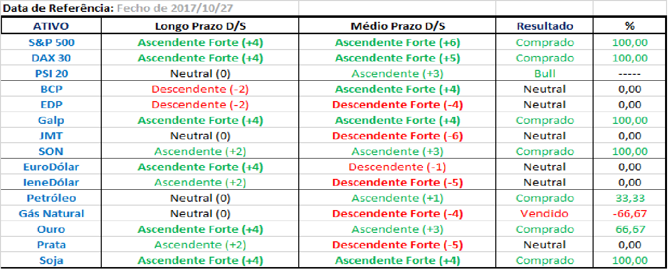 Daí que estas breves notas abaixo reflitam apenas os outputs do conjunto dos sistemas de trading sobre que posiçoes estaria hoje a arriscar, se mantivesse a carteira ativa aos dias de hoje, o que nao é o caso.