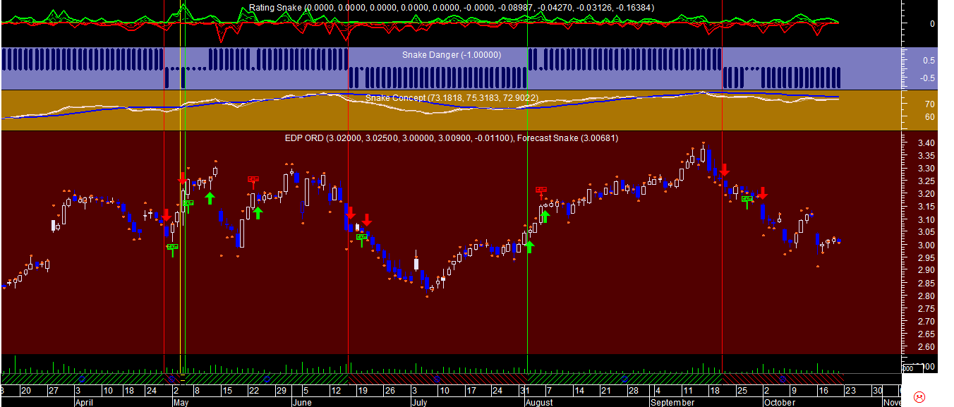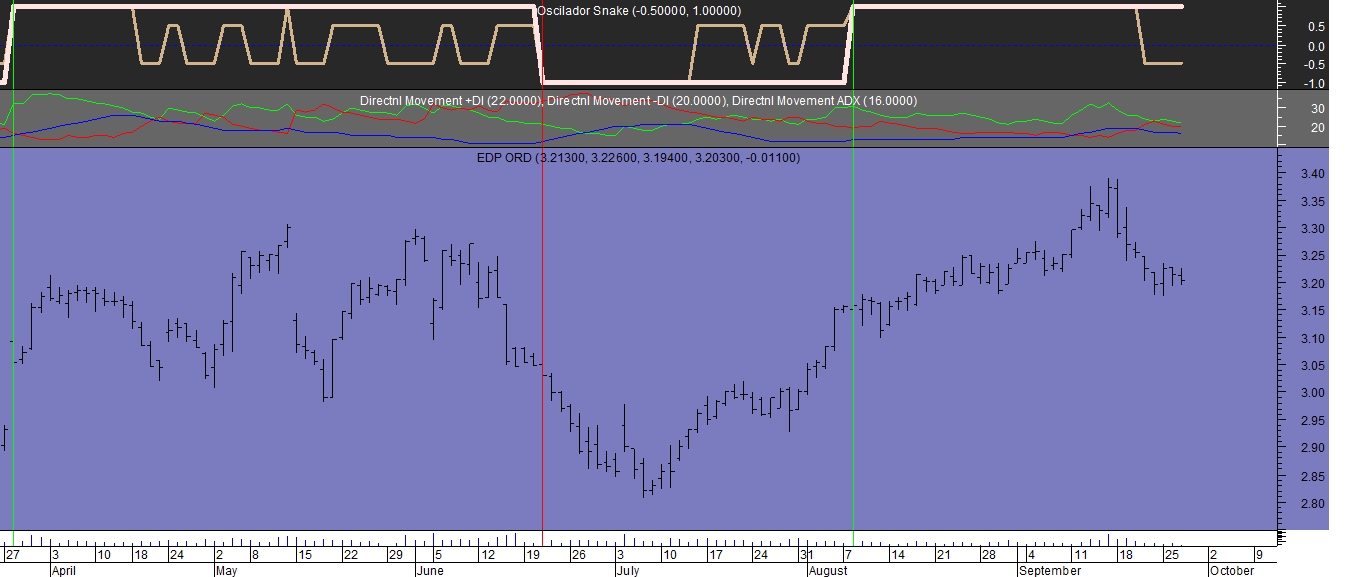 Quanto aos gráficos abaixo, para além de um dos sistemas de trading com o downgrade no EuroDólar e dos mapas semanais de comparaçao entre as forças de rating posicional entre todos os componentes da carteira, o confronto entre dois papéis com sinais distintos no âmbito do PSI analisados sob o mesmo sistema de trading, a EDP negativa e a Sonae positiva.