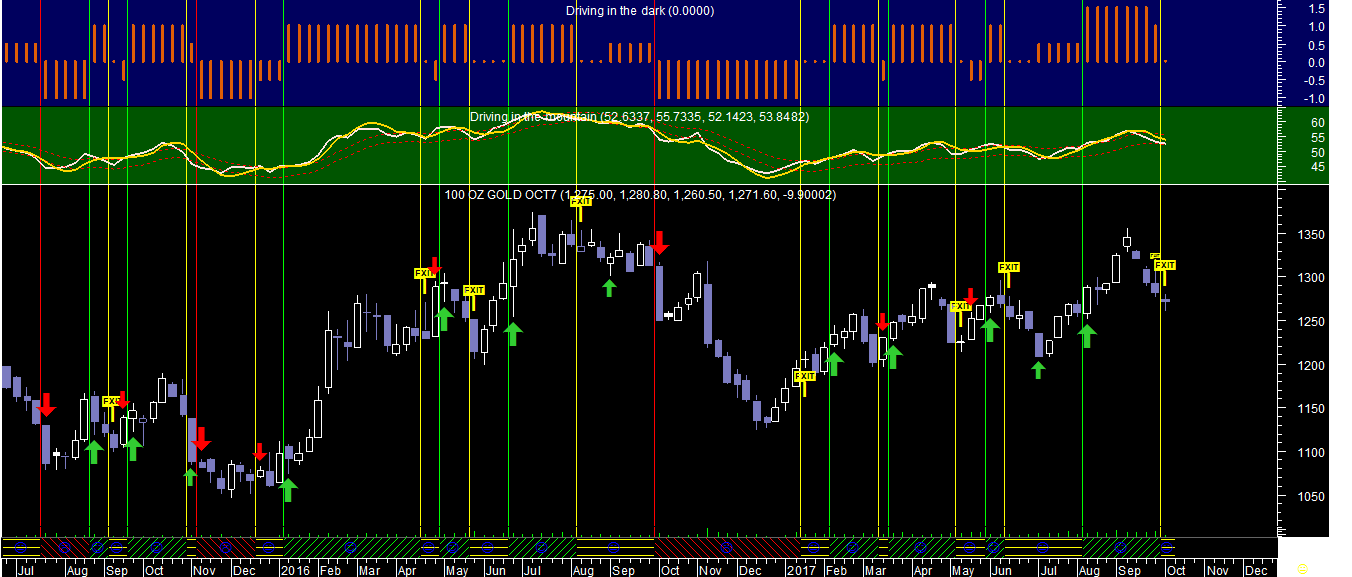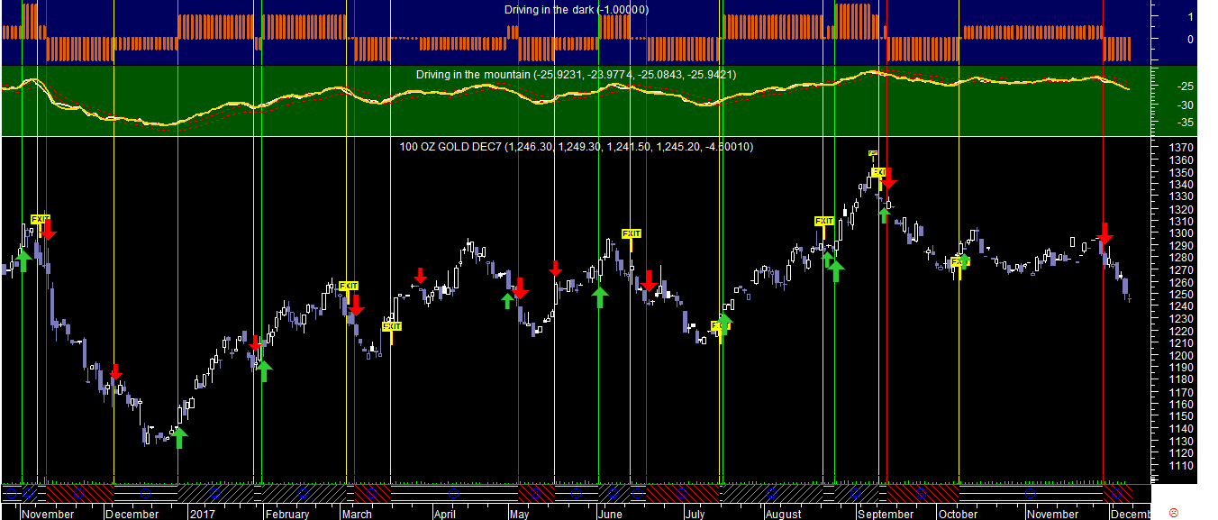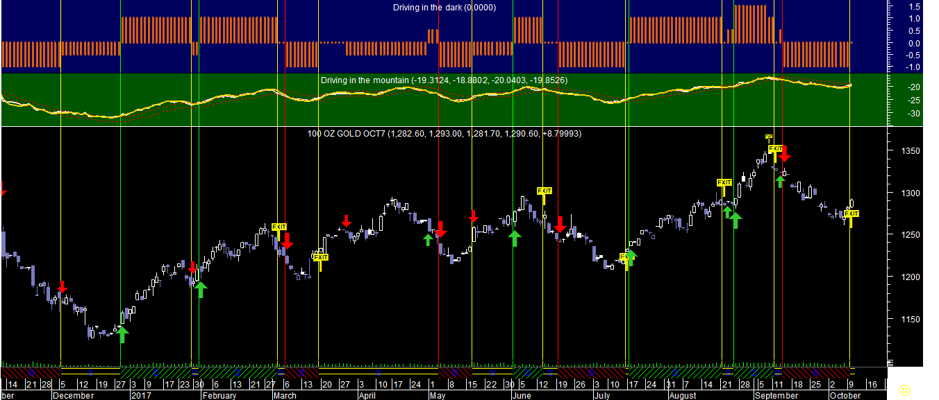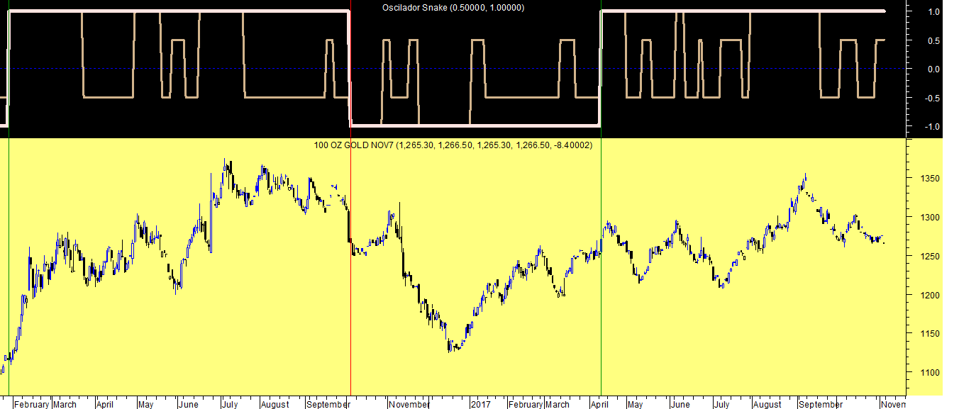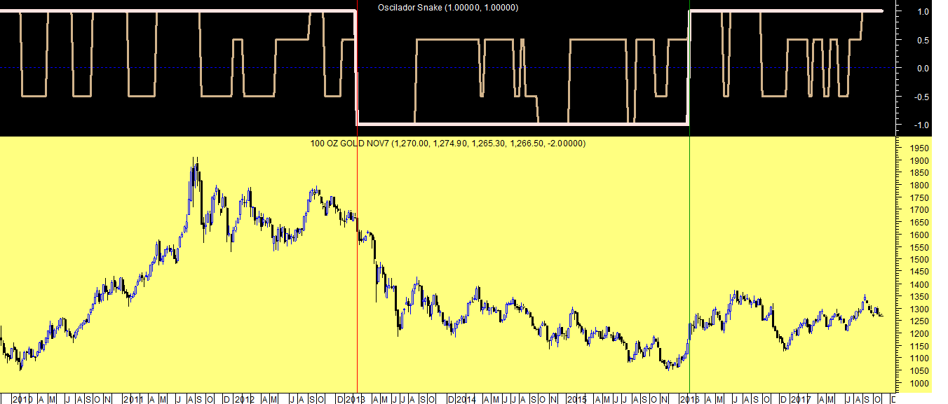 Os gráficos que hoje deixo ficar referem-se ao pior dos papéis existente nesta carteira, por enquanto a única mercadoria que vai levando para já uma rentabilidade negativa, o Ouro, aqui apresentado num dos sistemas de trading em escalas temporais distintas.