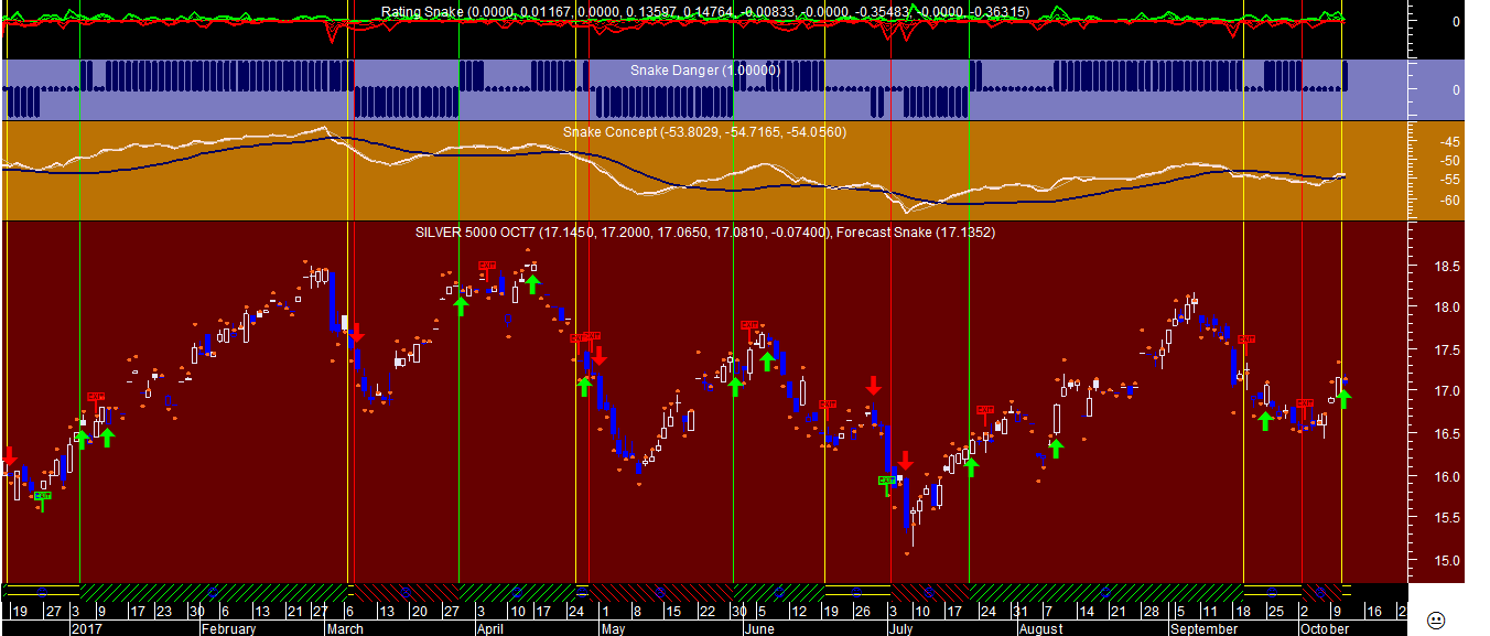 Fica abaixo um gráfico de um dos sistemas com um sinal significativo representativo do que se passa na Prata, dois gráficos do BCP com sinais contrários e os quadros semanais comparativos das forças dos ratings posicionais dos diversos papéis.