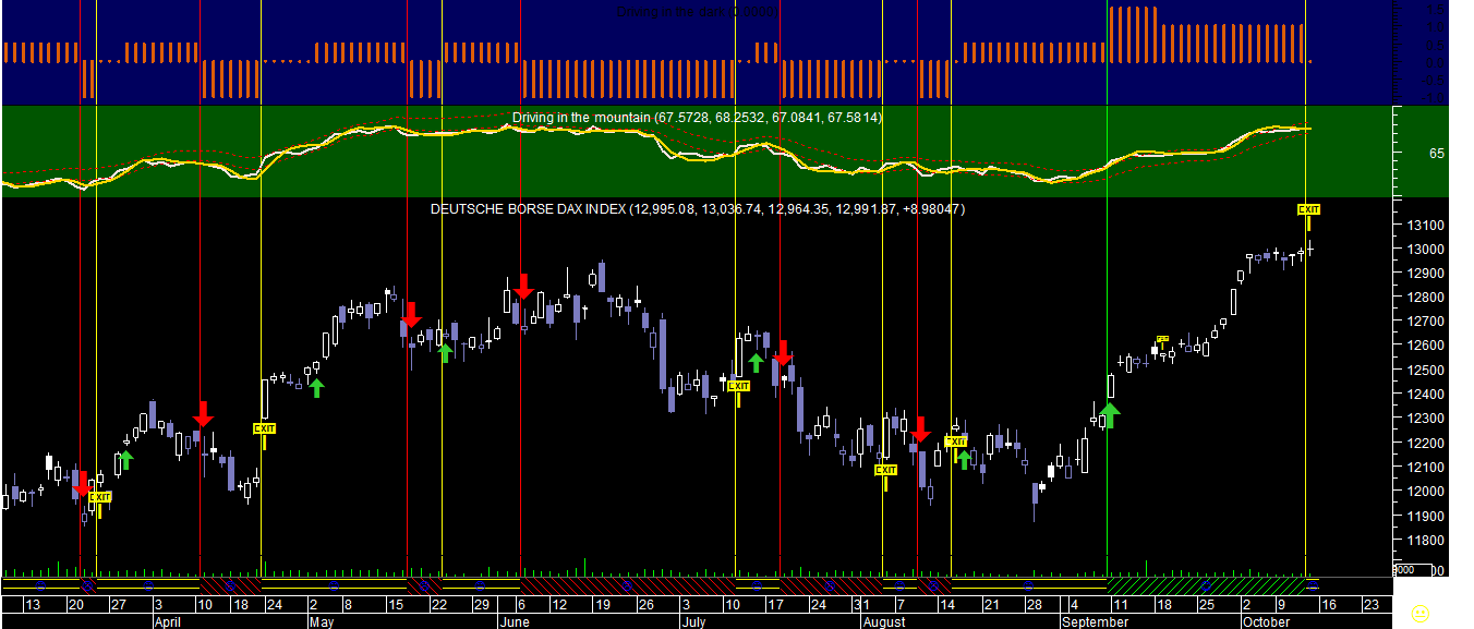 Ficam uns gráficos que considero significativos sobre o DAX em 2 dos sistemas de trading, sobre a Sonae e o Petróleo, para além dos últimos quadros comparativos sobre as posiçoes aconselhadas nos papéis analisados.