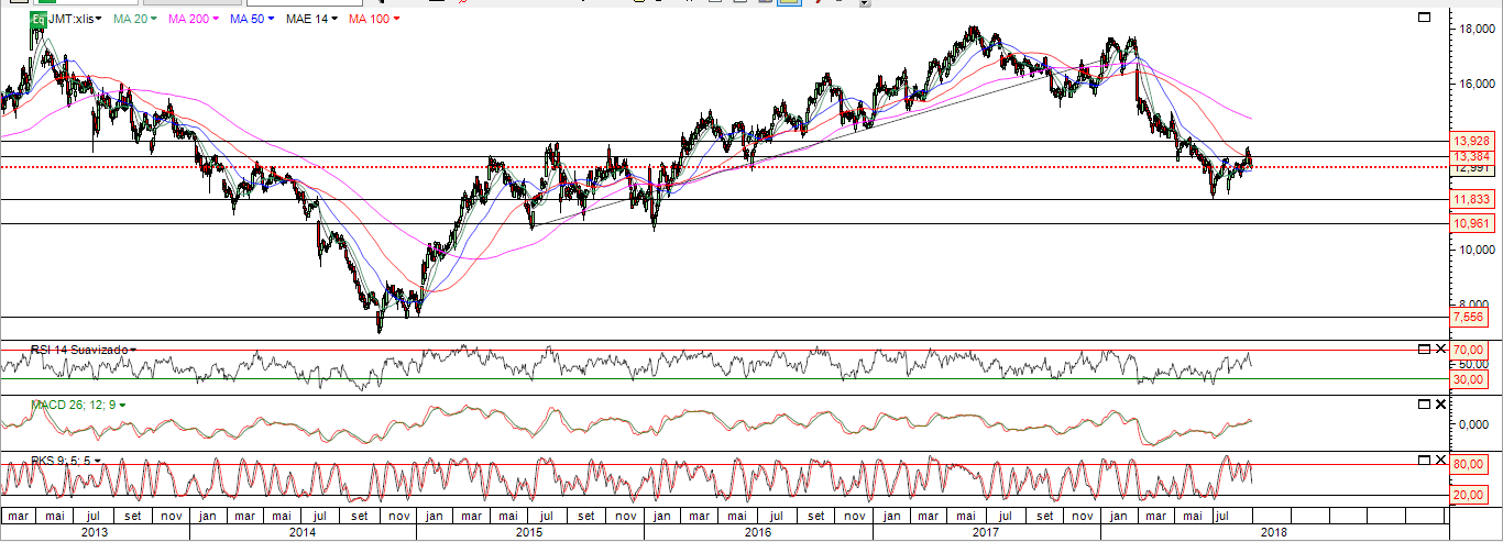 Deixo um gráfico semanal, com um canal descendente e o RSI em mínimos antevendo uma recuperação até ás médias móveis.