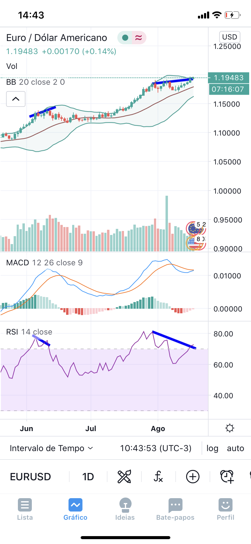 Do EUR/USD, mais uma tentativa em alta, foi a 1.1850 - mas já voltou a 1.18 sinalizando a menor força dos touros. O par ainda está com viés de alta, mas assim vai ficando neutro...