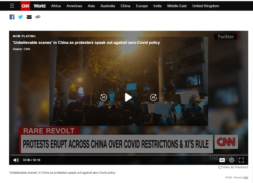Não me encontrando nem tendo estado na China, apenas tenho evidências indirectas (incluindo as do tipo que já mencionei). Não estou meramente a "assumir", antes observo/constato que é pior. Existem múltiplas reportagens dos chineses às varandas dos apartamentos, dos protestos com papéis em branco, das forças policiais a prender manifestantes.