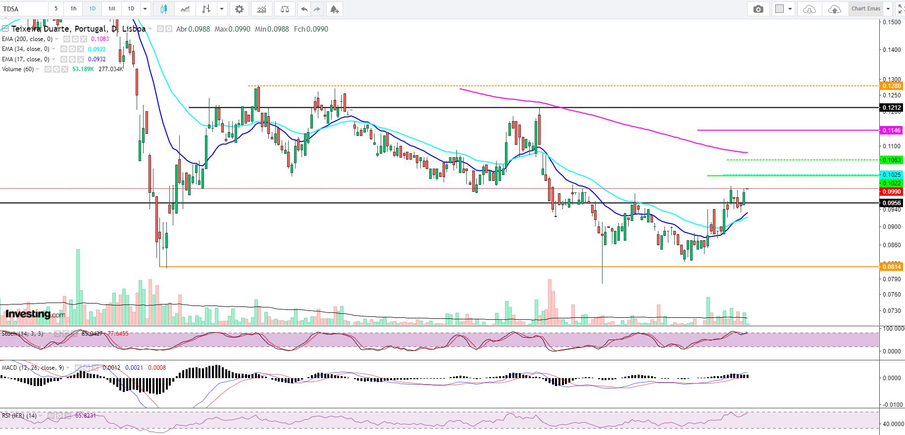 Duas boas notícias para a TD hoje, será por isso que ela se começa a mexer, ela dá indicação de querer subir, vamos ver como inicia amanhã, olho atento.