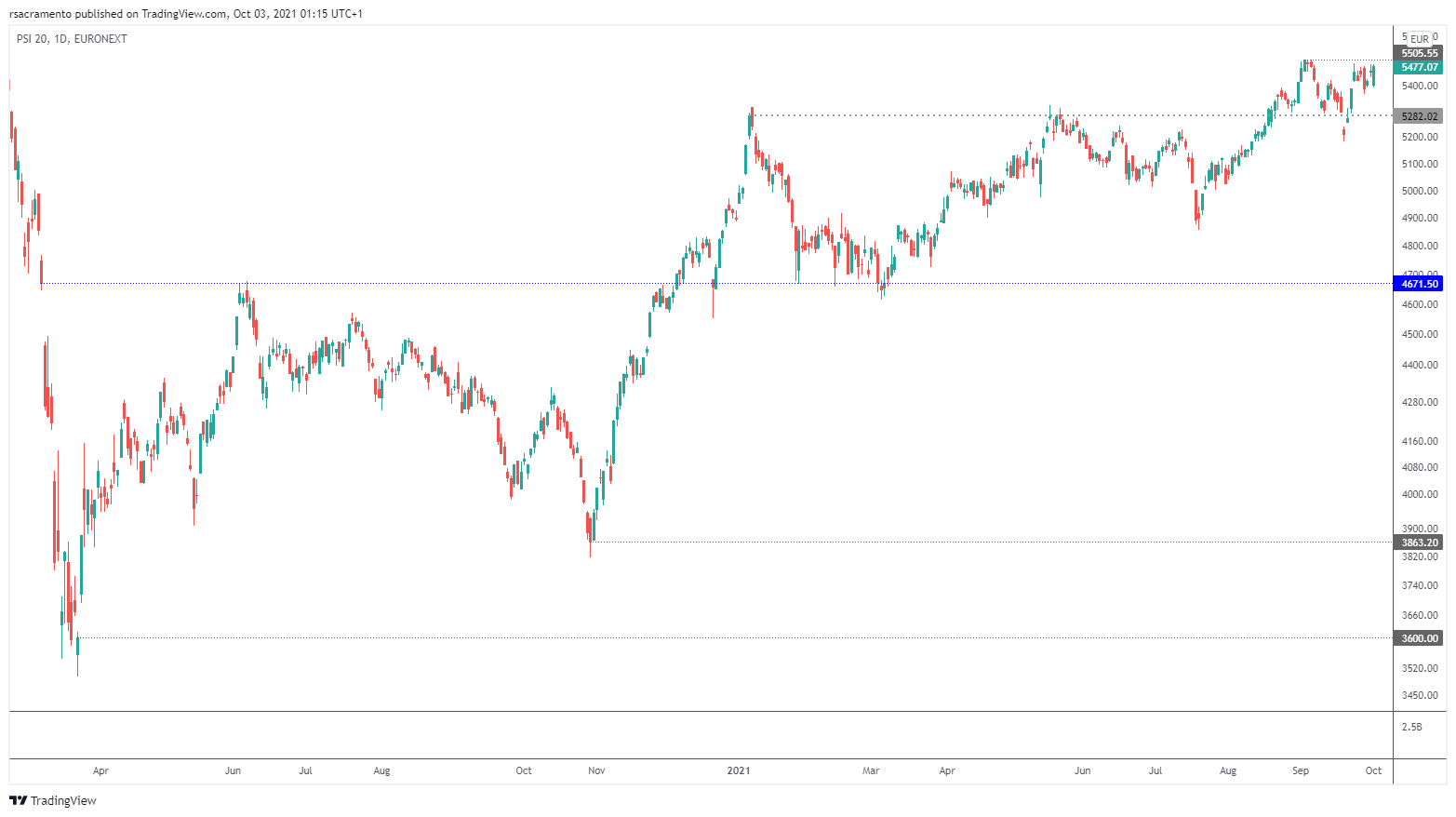 Goya777 Escreveu:Sendo que o Psi está em máximos dos ultimos 3 anos, tem sentido ver anteriores resistencias, como a zona dos 5650 +- de Julho 2018?