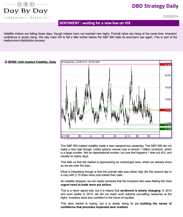 Quando os touros querem a queda para comprar mais barato (como eu por ex.) e os ursos querem shortar (há motivos para todos os gostos e feitios: já subiu muito, o indicador está aqui mas o preço fechou acolá, estamos em Maio, vamos entrar no Verão, as valuation estão altas, o ratio Cape/Shiller está aquecido, etc), como é que o mercado reage? Joshua Brown responde: The current result is a Great Big Nothing – a slow-paced, no-volume grind through all-time highs as sentiment waffles day to day, depending on who sneezes into a microphone somewhere or which data point is mildly surprising to its constituent watchers. Enjoy, I guess.