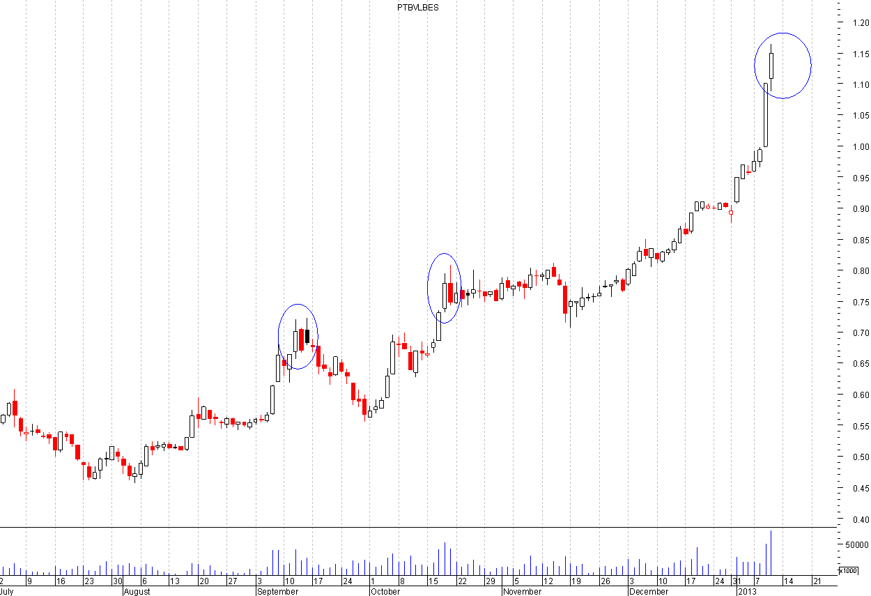 Se estivessemos a falar em quedas até se podia aplicar a situação da exaustão de vendas mas em subida a coisa não é bem simetrica.