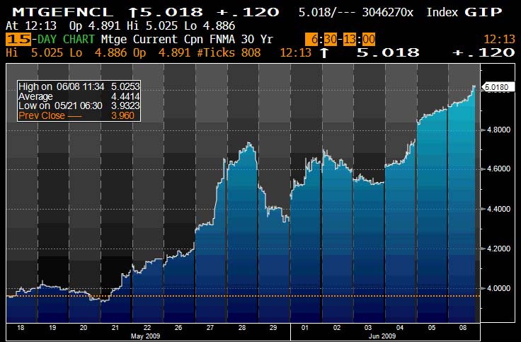 Yields on 10-year Treasury notes, a benchmark for home mortgages and other consumers loans, jumped from 2.5 percent in March around the time of the Fed announcement to as high as 3.7 percent in recent days as signs that efforts to stabilize the financial system and economy were starting to pay off. And 30-year mortgage rates jumped more than a quarter-point this week to 5.29 percent, the highest level since December, Freddie Mac reported.