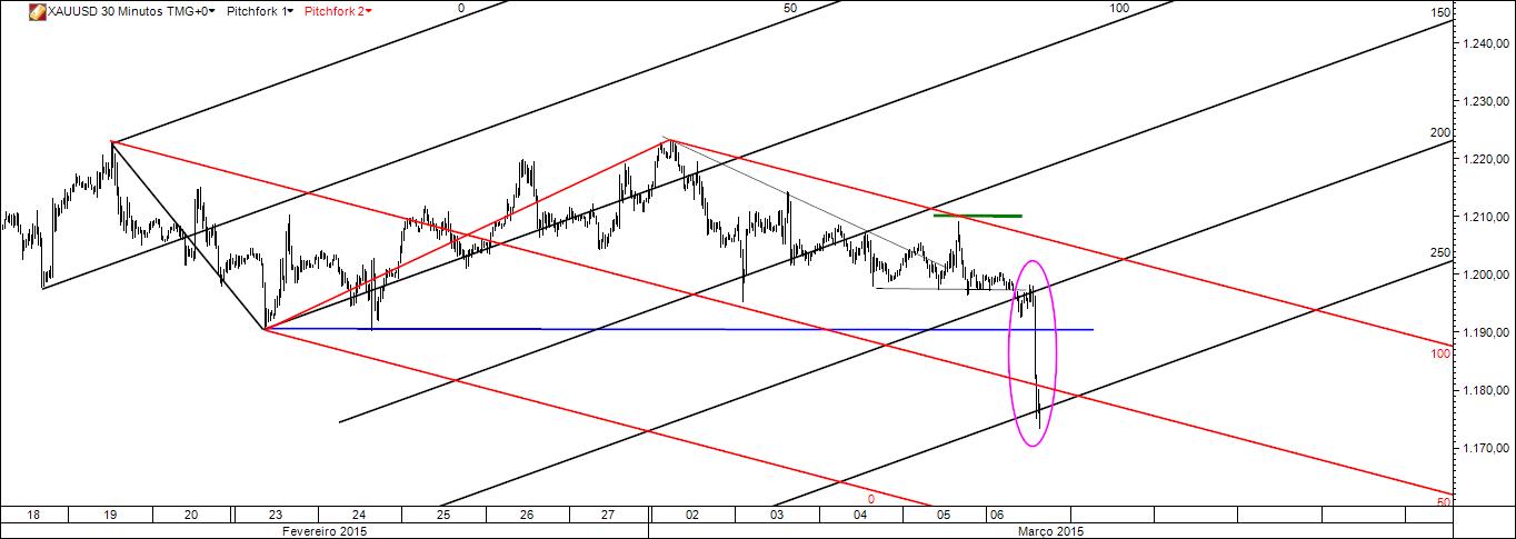 Mercado: ouro através do derivado xauusd. Timeframe: 30 m.