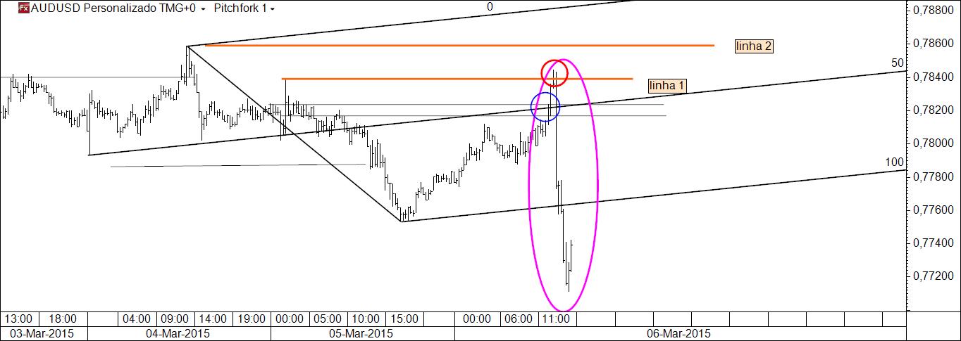 Uma das dificuldades que senti quando comecei a usar as ML tal como estão descritas no curso foi a sua transposição para timeframes diferentes (inferiores) àqueles em que Andrews se movia (diários e semanais). Esta circunstância fazia com que ele tomasse posições no mercado logo que as linhas fossem testadas/quebradas. Tentei fazer o mesmo em gráficos de por ex. 1 h, 20 m, e vezes sem conta era stopado. Verifiquei então que, para quem, como eu, gosta de andar em timframes inferiores, devia ir mais além do curso, sem nunca esquecer as regras (são intemporais), daí que tivesse começado a ver os videos do Tim que estão na IB e os vários textos dele (às dezenas: se não compreendia à primeira, repetia as vezes que fossem necessárias). Se o tens feito, já deves ter reparado que ele fala em teste/reteste das linhas como forma de se esperar por um sinal claro do mercado em vez de confiar, quase cegamente, numa linha, ainda que a ela esteja associada uma probabilidade muito interessante. Foi a partir desta lição que comecei a falar por aqui de duas formas de entrar: a agressiva e a conservadora. Esta última é deveras aconselhável para quem está no início, seja qual for a técnica que use (esta ou outra qualquer).