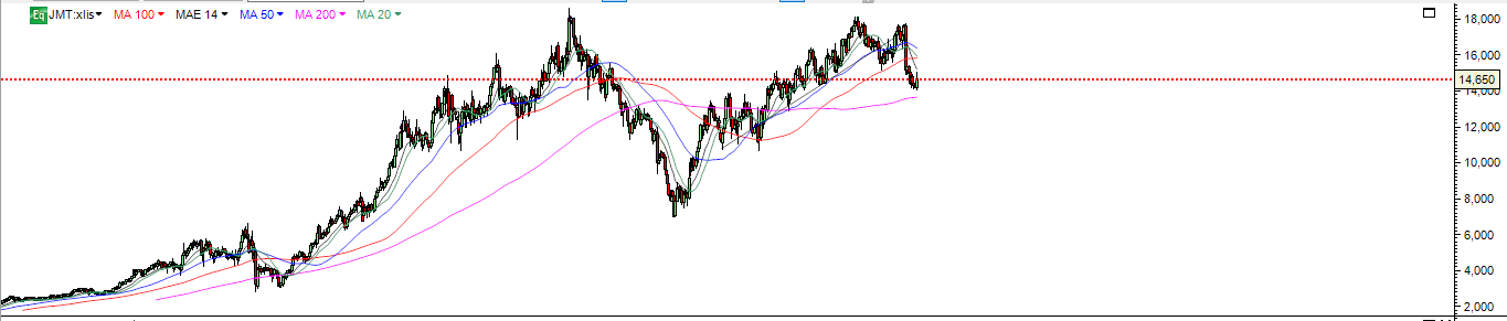 A JMT apresentou um crescimento de 9% ( O Crescimento Não justifica o valor a que cota ) , e que a meu ver até poderá ter um crescimento inferior no resto do ano.