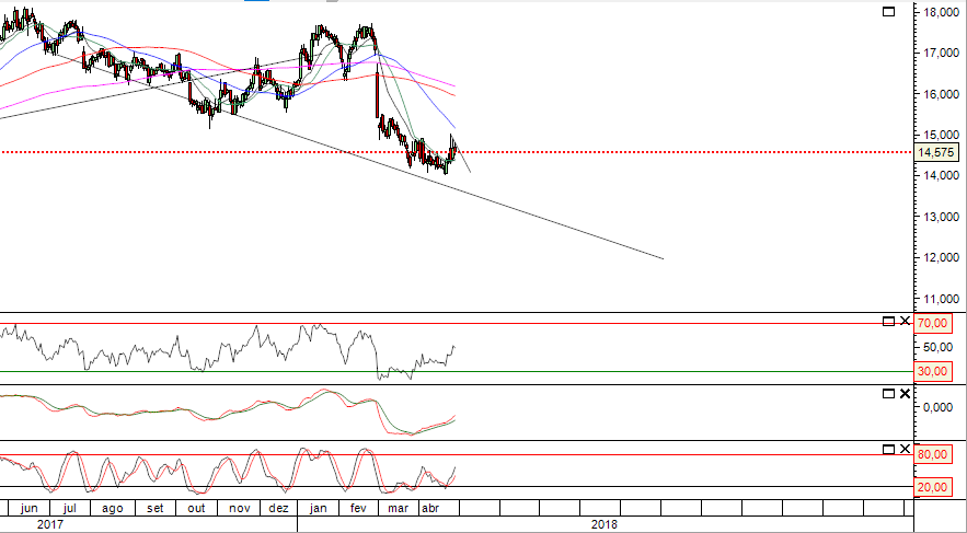 Resolvidas que estão essas movimentações poderá deixar de sofrer a pressão vendedora e o titulo retomar o seu caminho nas subidas.