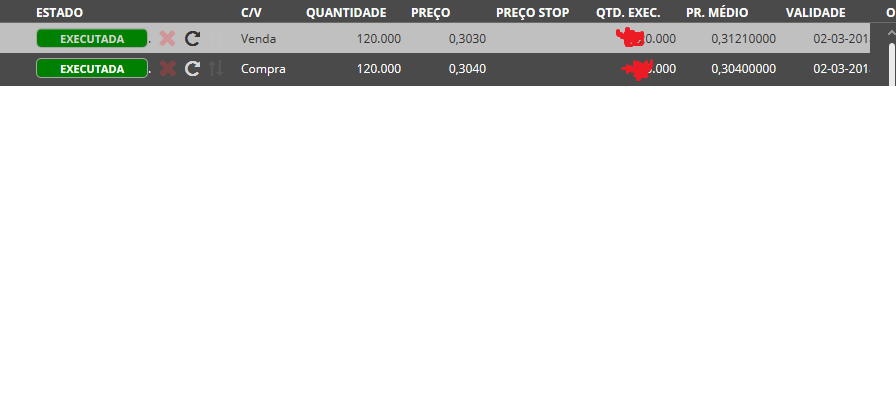 TInha colocado perto do fecho a venda nos 0,3044, que não se consumou por muito pouco. Após o leilão, fiquei a pensar que a minha venda tinha sido executada a esse preço, e só depois de ver um companheiro aqui comentar, é que fui ver os detalhes da transação, e confirmei que vendi por 0,3121.