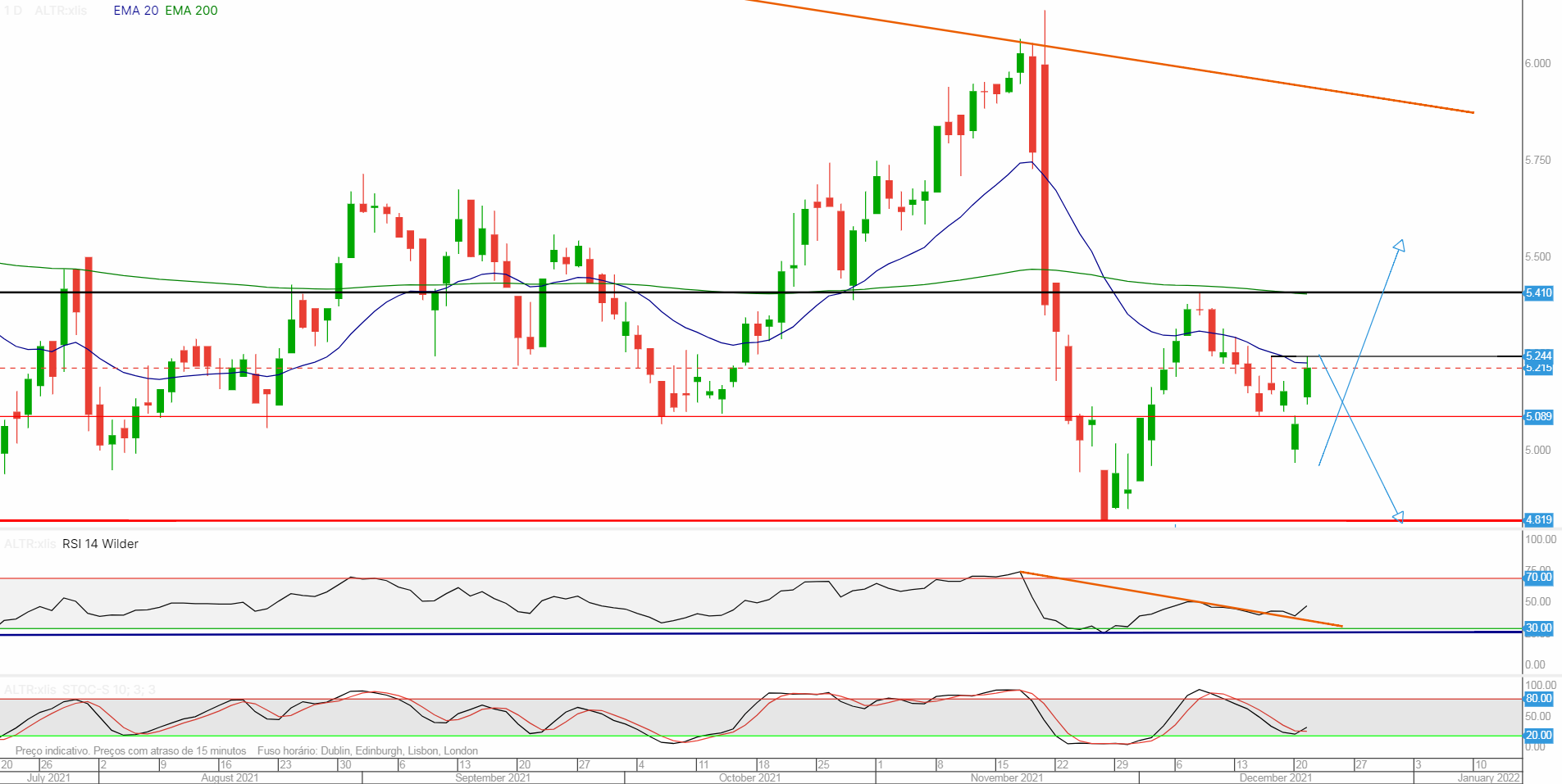 5,245€ máximo de hoje e quinta feira, é a primeira pequena resistência a vencer