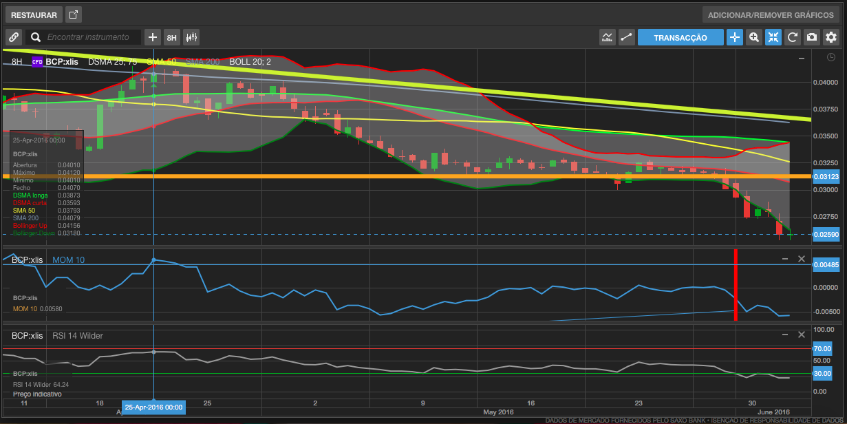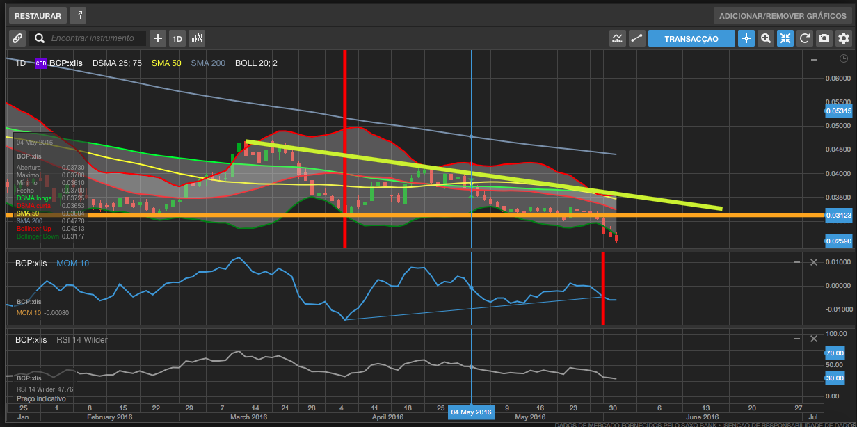 Contudo, acho que vou abrir uma excepção, no Bcp, caso desça ali abaixo dos € 0,025 hoje, talvez faça umas compras em cfds, para um ressalto na próxima semana até aos € 0,0291..... ela não pode descer sempre, ou se calhar até pode, isto se vier aí um novo BANIF no fim-de-semana...