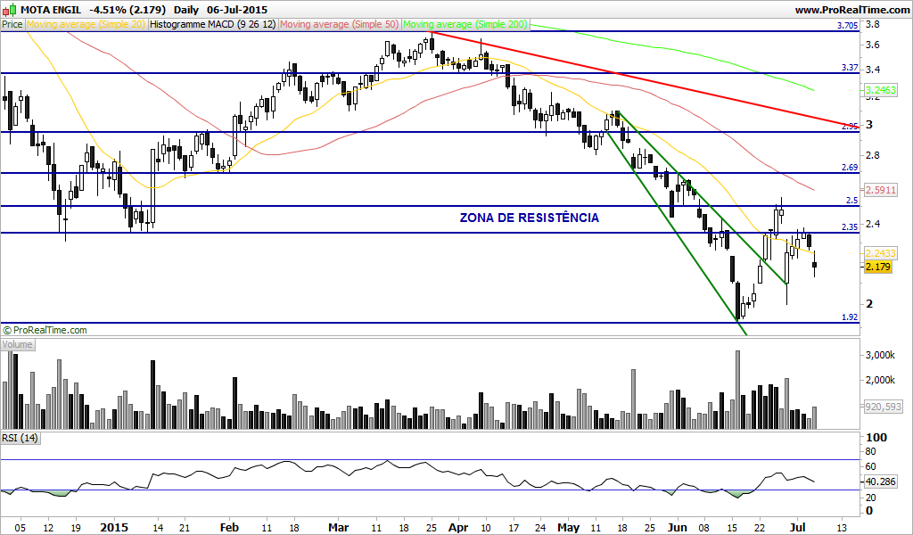 Continuo longo na Mota, com um per na ordem dos 10 e com uma carteira de encomendas a aumentar. As margens é que já é outra conversa, com o aumento da quota parte da América Latina e Europa em detrimento de África. As notícias da Grécia influenciam, principalmente as ações mais voláteis, surgindo boas oportunidades de negócio, sendo necessário manter a calma e seguir a estratégia delineada.