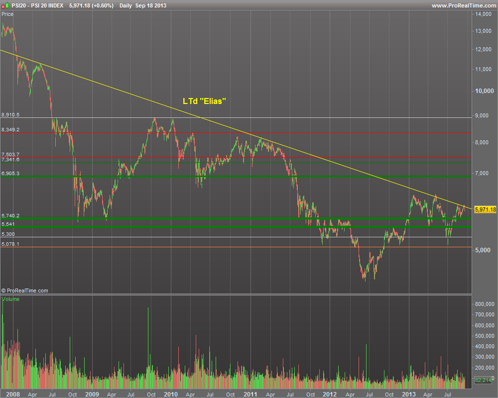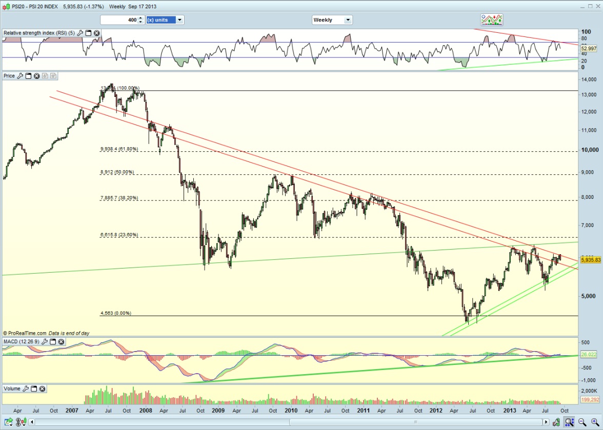 Se for para minimos de 1 ano, a recuperação economica fica adiada, se continuar a lateralizar, obtemos a chamada consolidação para continuar o crescimento, se entrarmos em bull rompendo maximos anuais, devemos sair mais depressa da recessão. Só o mercado nos vai dizer agora como 2014 vai ser.