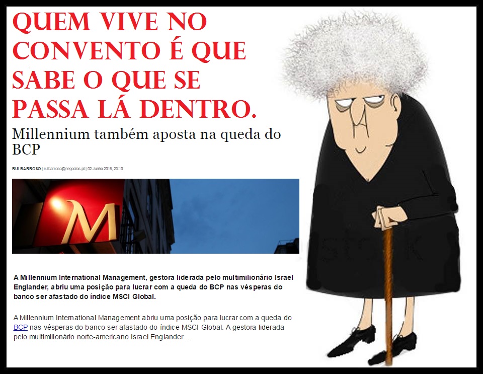 O que dizes é verdade para todas as empresas cotadas. Mas o BCP cai todos os dias. As outras sobem e descem. Há uma pequena diferença.