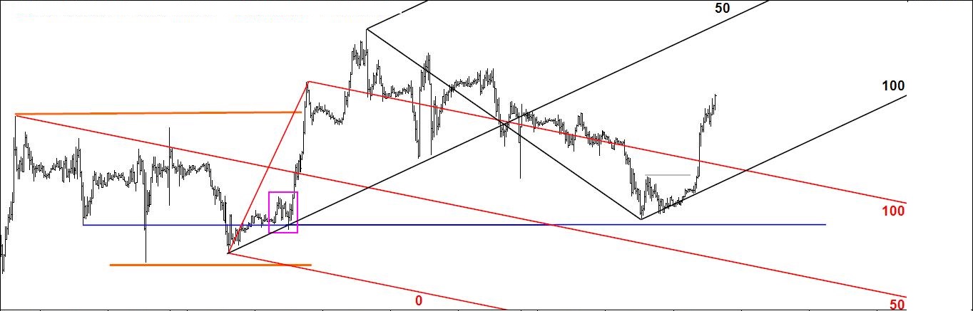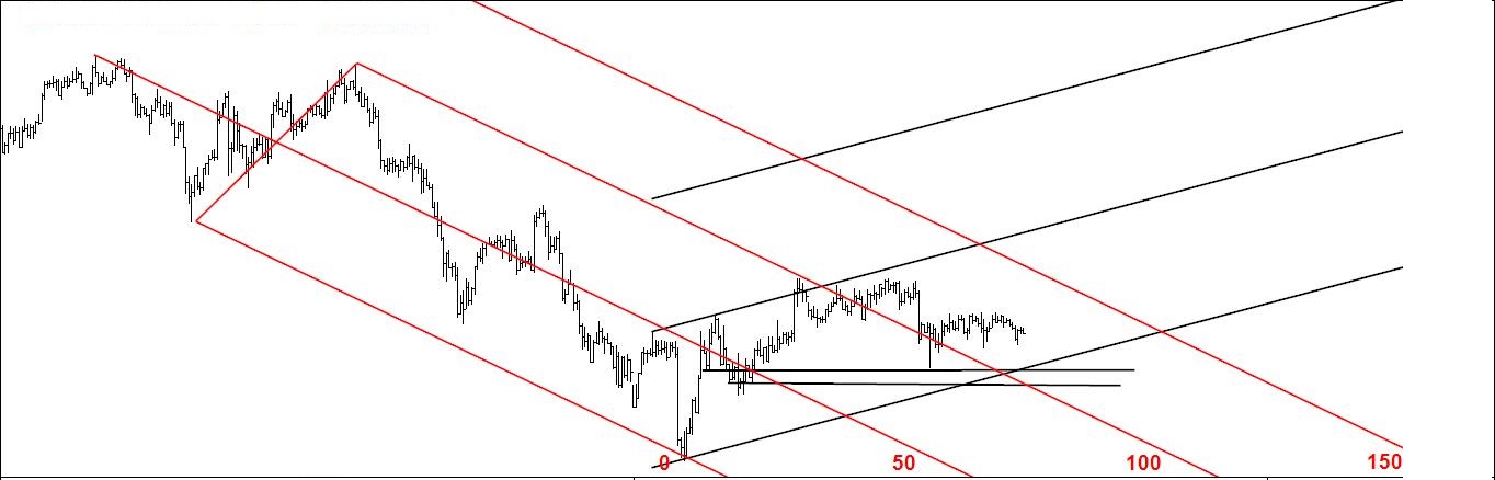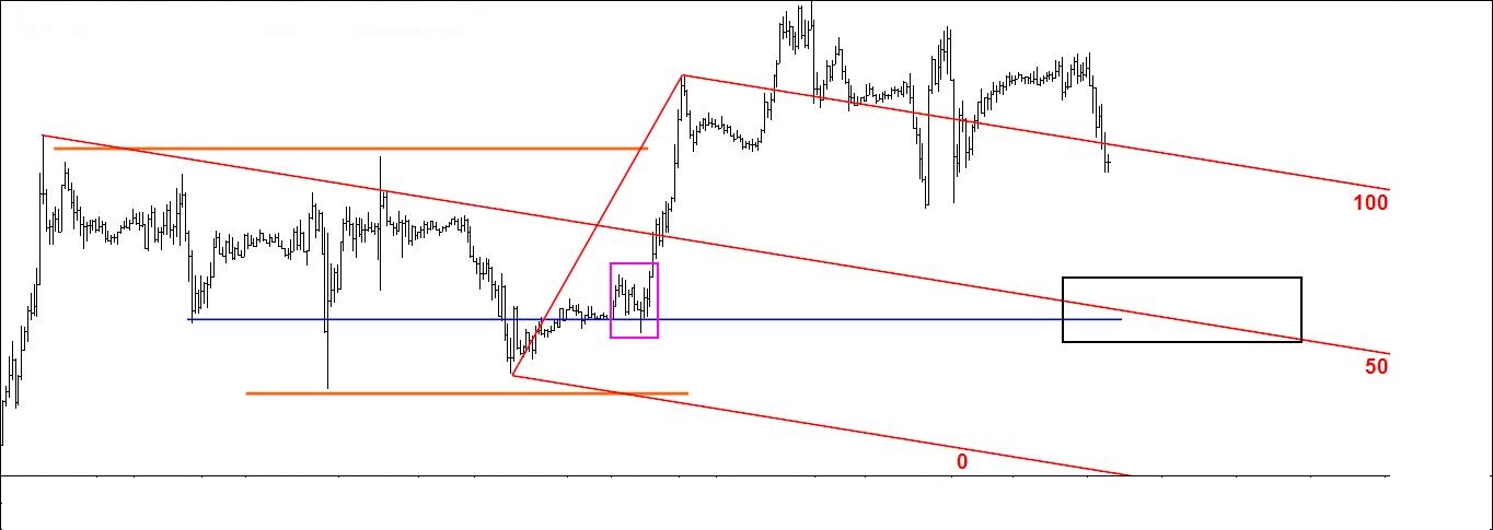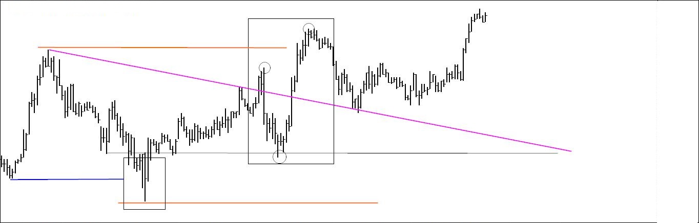 Pela última vez coloca-se aqui o gráfico 1. Como já tem muita informação para o meu gosto vou apagar tudo e aproximar-me do preço pois só assim consigo ver os especuladores andam a fazer (gráfico 2).