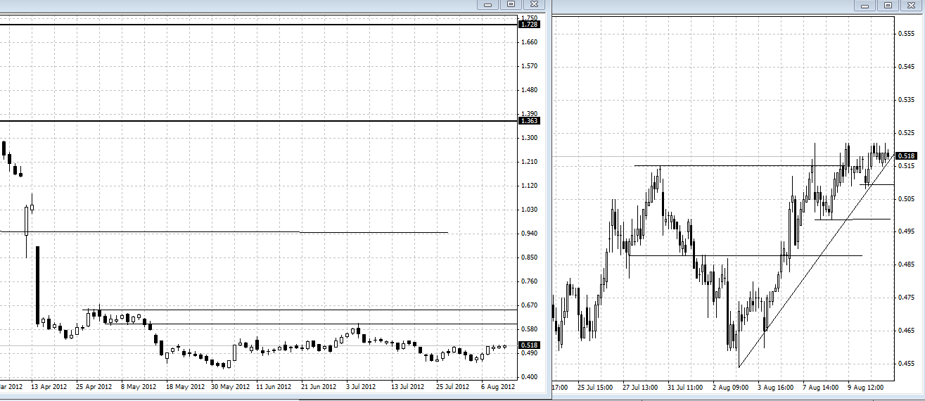 era bom que os .50 aguentem a cotação,caso quebre temos os .485. para continuação desta leg ascendente era bom colocar-se acima dos .515 o mais rapido possivel.