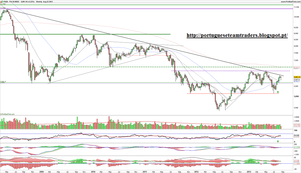 A tendência de curto prazo está completamente do lado Bullish. Nos próximos dias será testada a tendência neutra de médio prazo e a Bearish de longo prazo. Isto significa que a LTD que vem pressionando o PSI desde 2008(!!!) será testada. Existe força para ser derrubada?