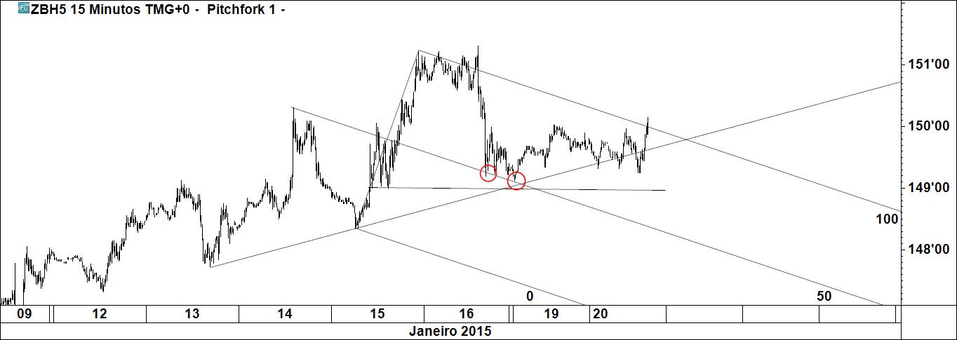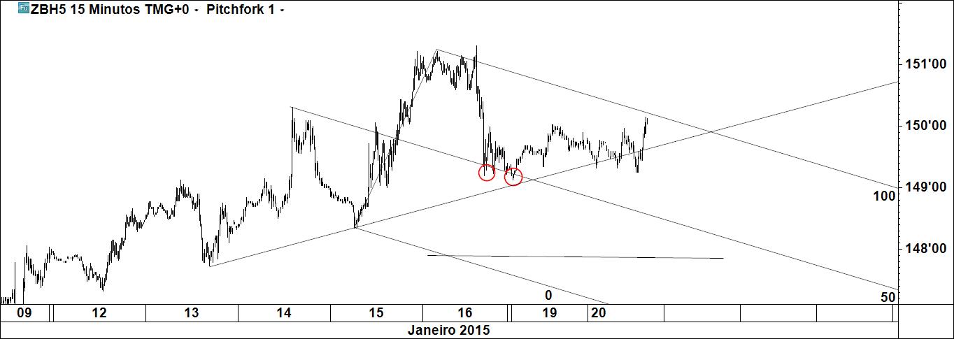 Ordem executada, stoploss já redimensionada para melhor. Os dois gráficos servem para mostrar que mais importante que a linha é o preço: qualquer que fosse o pivot c, a compra seria colocada na mesma zona.