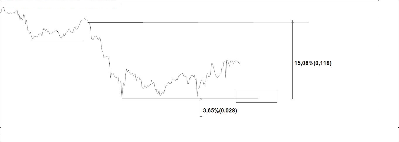 Criando uma oportunidade para investir num activo muito importante usando um gráfico de 5 minutos. Por se tratar de uma aposta altamente especulativa não identifico o mercado. A plano é simples: comprar na zona assinalada com stoploss abaixo do pivot (cerca de 3,5%) e target lá em cima (cerca de 15%). O que releva é a estrutura do preço, não o modo como é representado num gráfico. Até podiam usar as pombinhas da Catrina: desde que a coisa flutue tudo é possível.