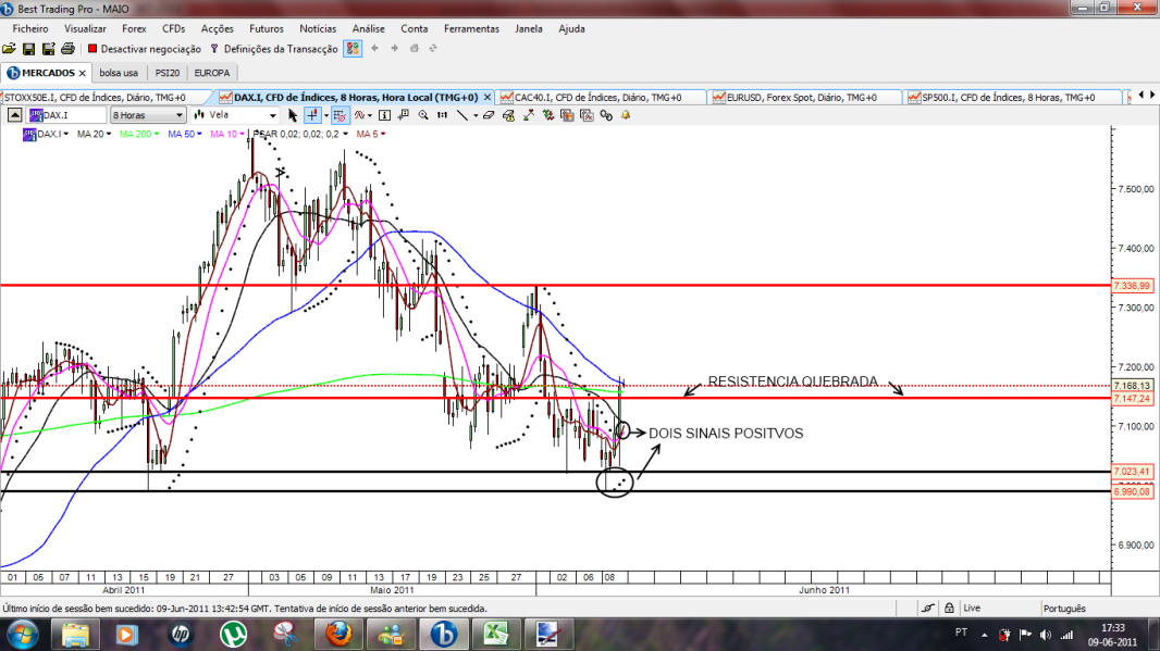 Bem, para começar, estou longo desde ontem e fiquei com a posição para segunda porque o problema da Europa versus Grécia está-se a resolver no curtíssimo prazo, apesar de eu ter algumas dúvidas se mais tarde ou mais cedo, não vai entrar em default!! Mas isso são outras conversas.