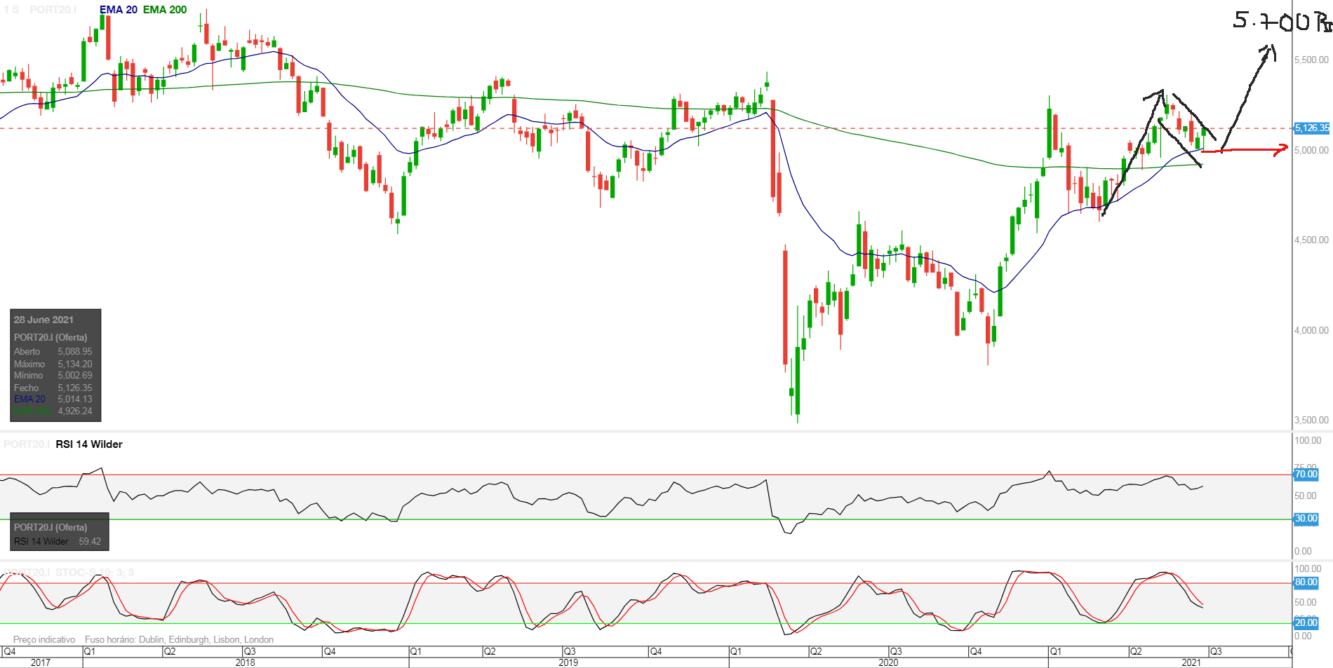 Não não, de muito curto prazo nos 5020/5030! Já lá esteve hoje suficientemente perto para mim (e entretanto de fugir na quebra dessa zona até aos 4975 pela sua relevância no início de Maio).