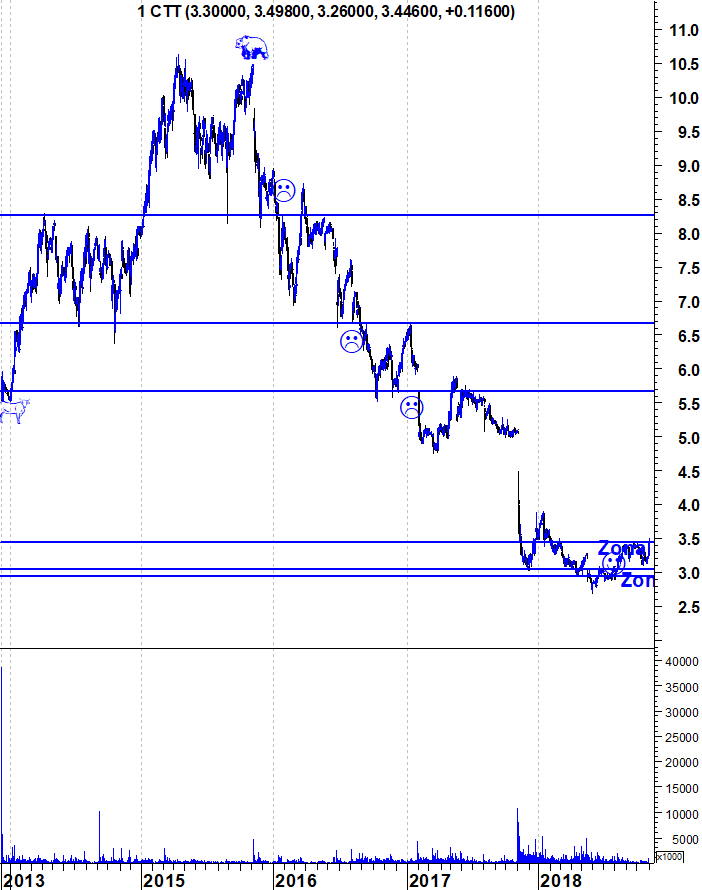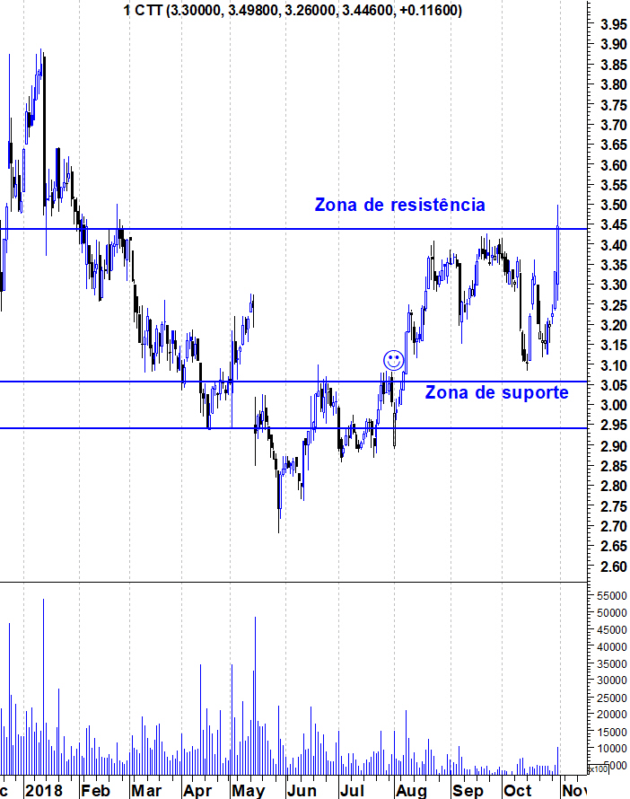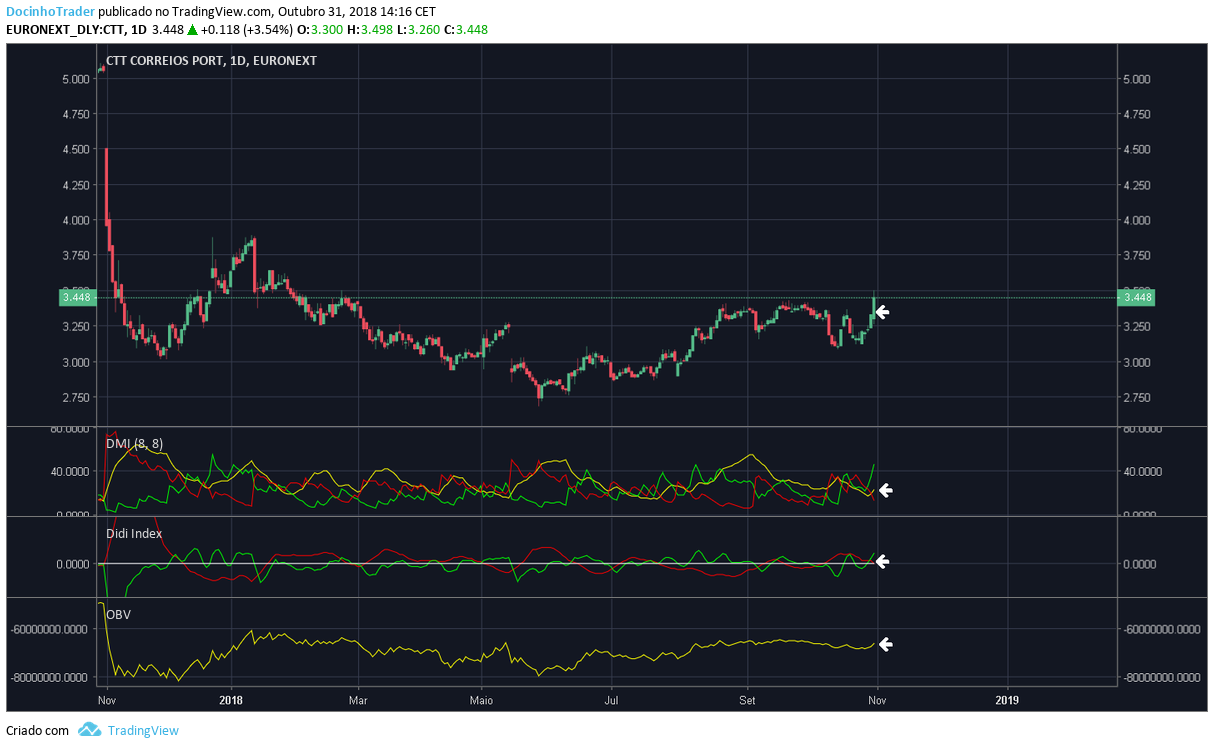 Com a boa reacção de hoje aos resultados, os CTT voaram até à sua resistência. Creio que possa existir alguma luta nesta zona porque é uma resistência muito importante. O ideal seria alguma consolidação nesta zona, antes dos touros atacarem esta importante resistência. Mas nos mercados, a perfeição raramente existe.