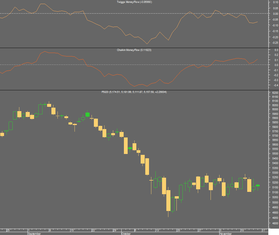 eu, que não sou dado a indicadores, fui buscar dois, ambos de acumulação/distribuição