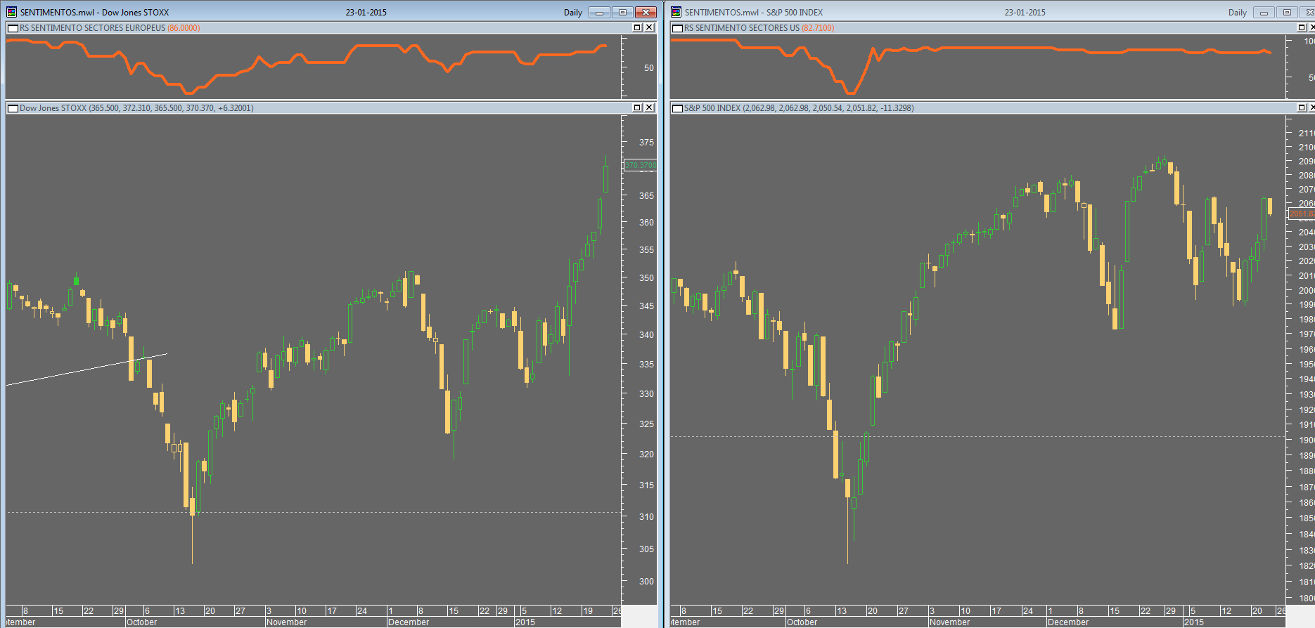 é preciso recuar ao outono de 2011 no S&P e a outubro passado no STOXX 600 para encontrar valores tão baixos como agora no meu indicador bull