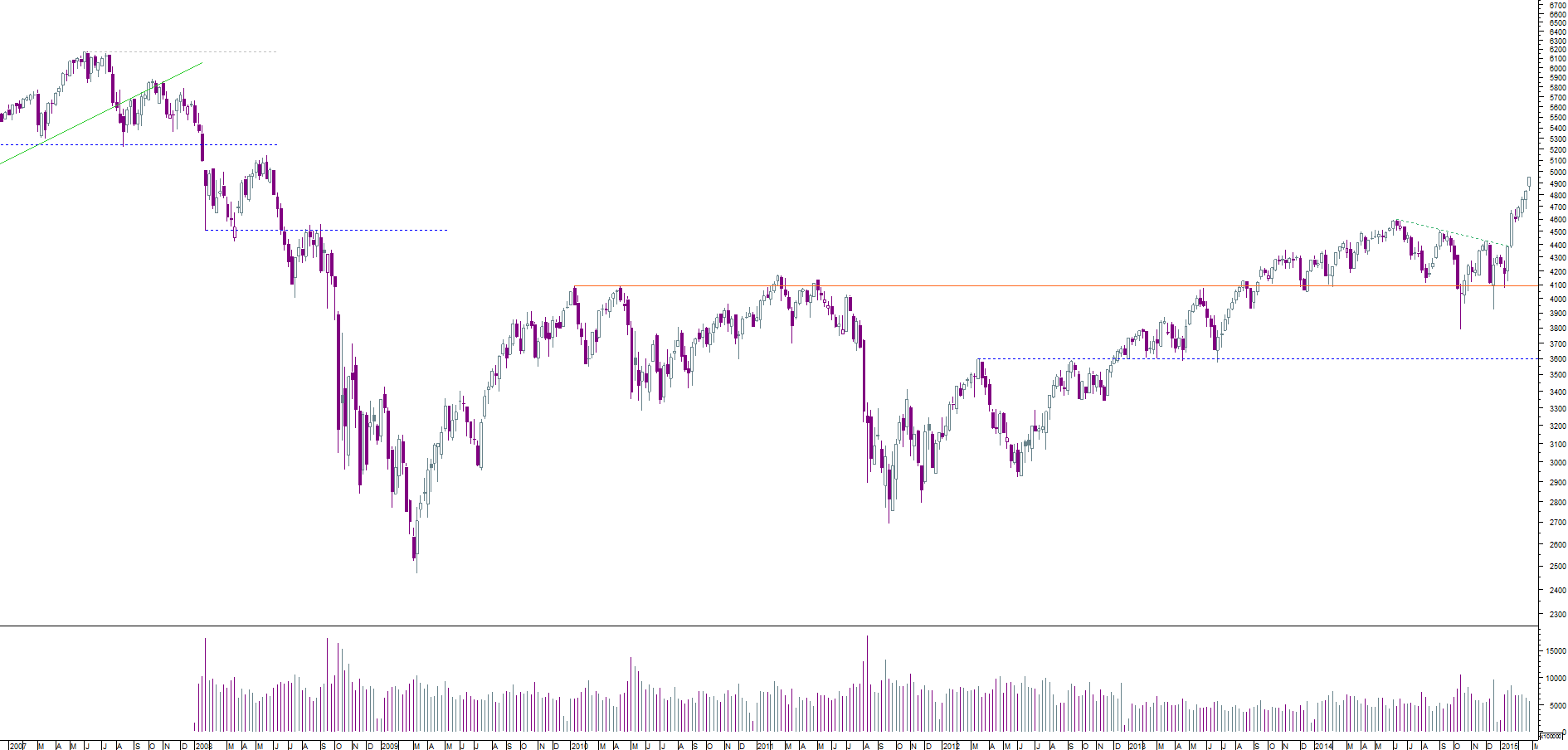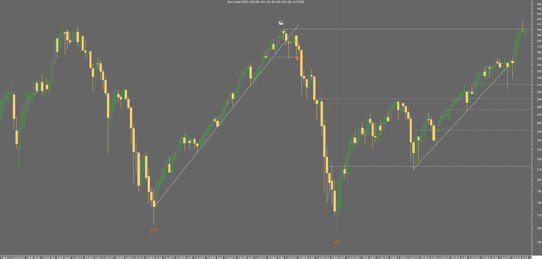 hoje trago 2 gráficos do STOXX 600, que ilustram respectivamente o muito longo prazo e o último ano