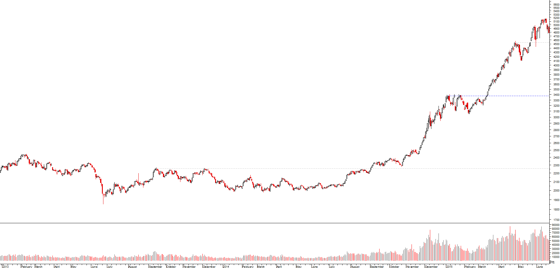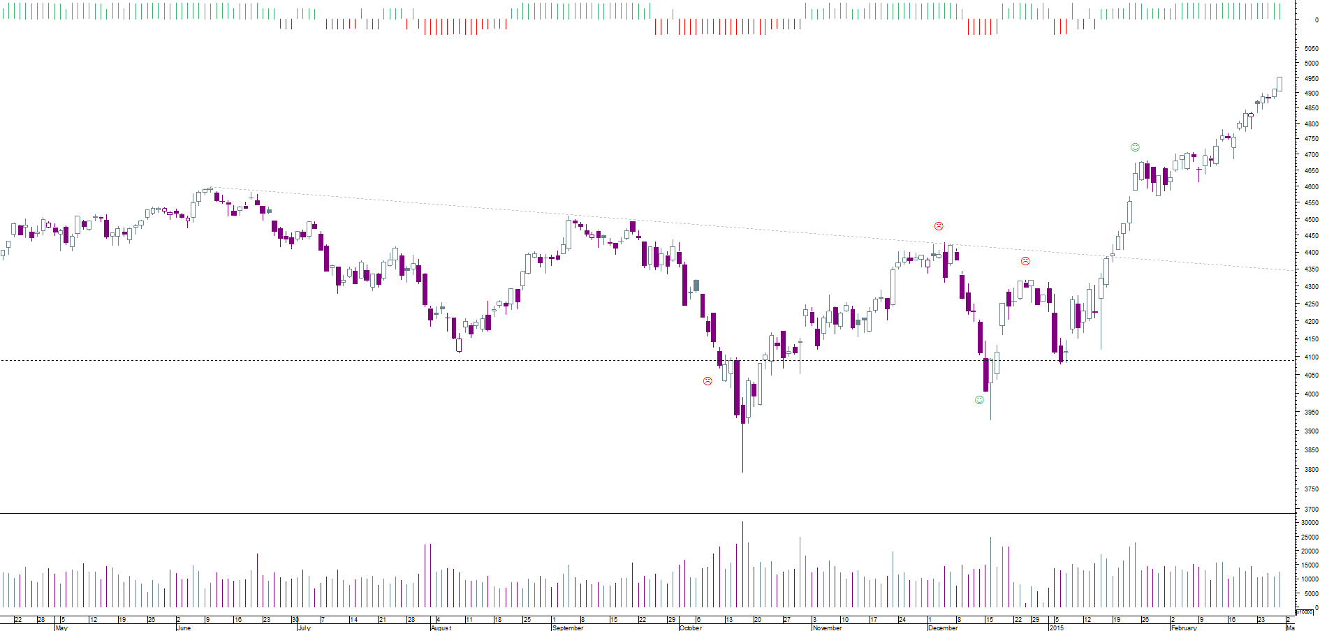 no gráfico diário o índice desenha uma linha