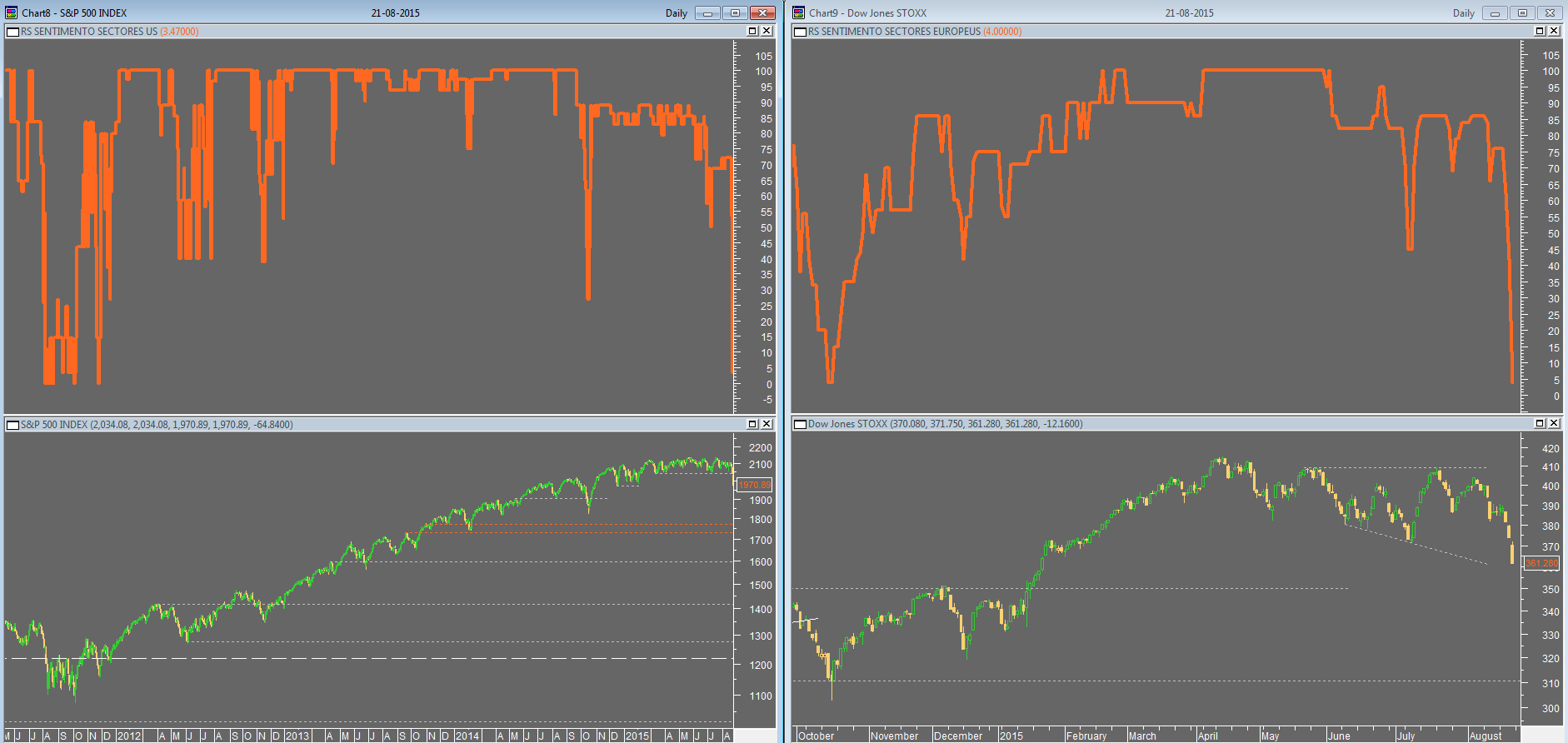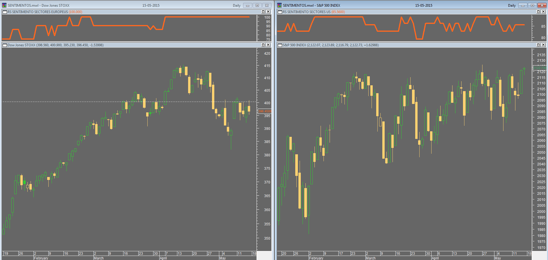 não deixa de ser irónico o facto de um índice estar em máximos e ter o seu (meu) indicador de sentimento longe de máximos, e outro índice estar a recuar de máximos e ver o seu (meu) indicador continuar a 100%