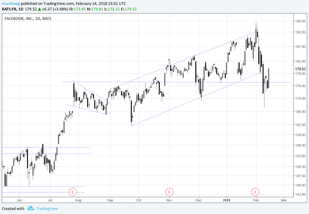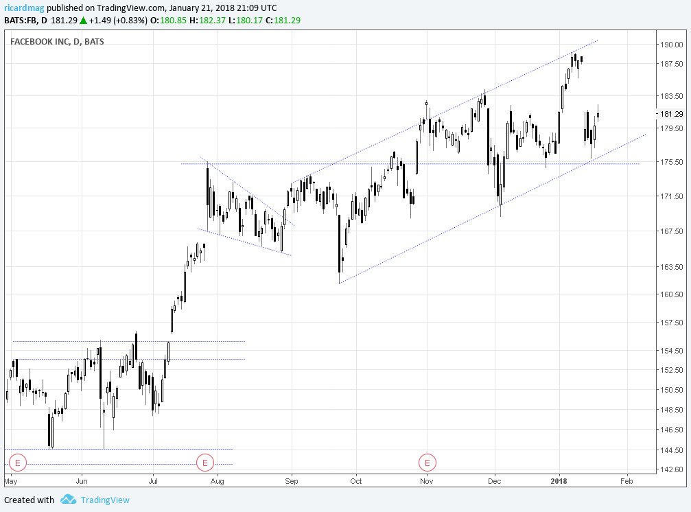 Clinico Escreveu:Fabuloso o disparo do FB. O Jim Cramer tinha carradas de razão ao apontar a queda como uma fabulosa oportunidade de entrada e o artigo que indiquei acima veio ajudar á missa. O mais engraçado é que o RSI ainda tem espaço para subir e ponho, a olhómetro, o limite da subida na parte superior do canal desenhado pelo Ricardmag que anda lá pelos 200, 200 e picos