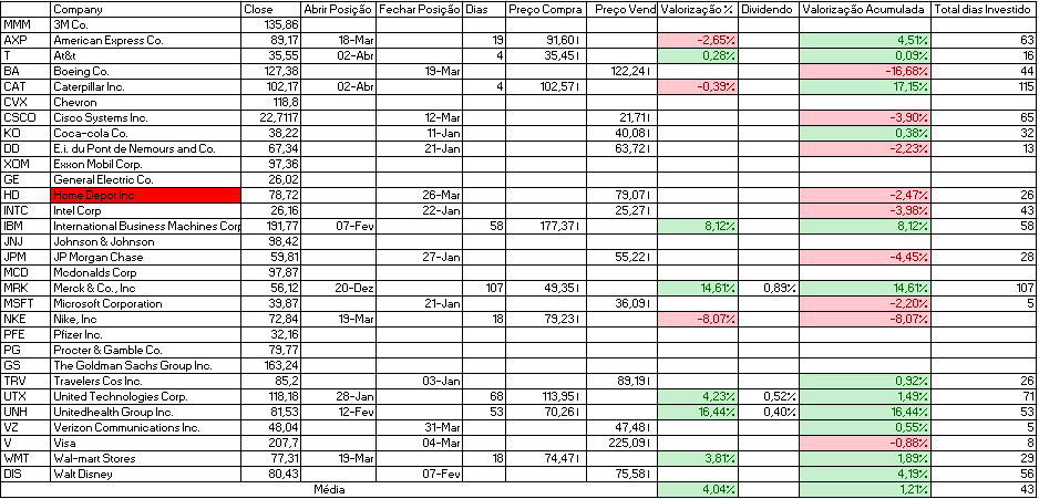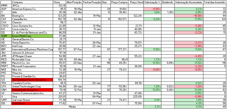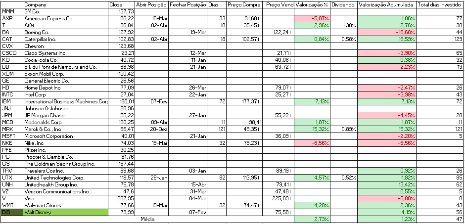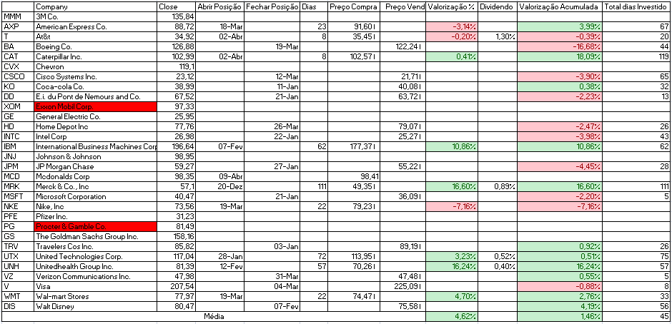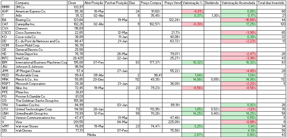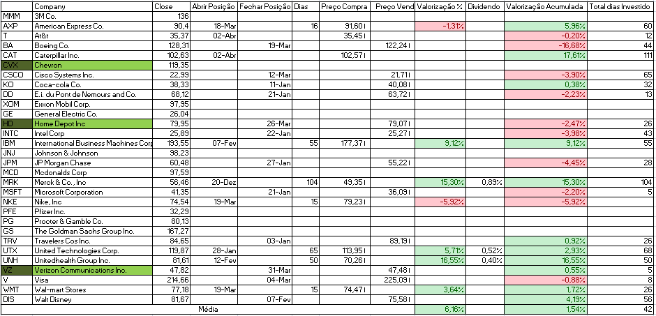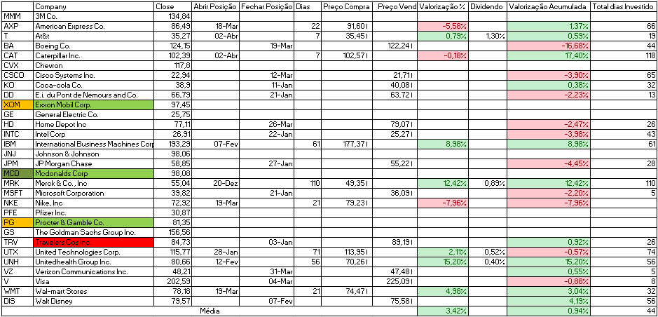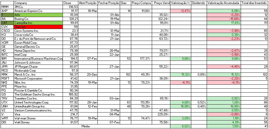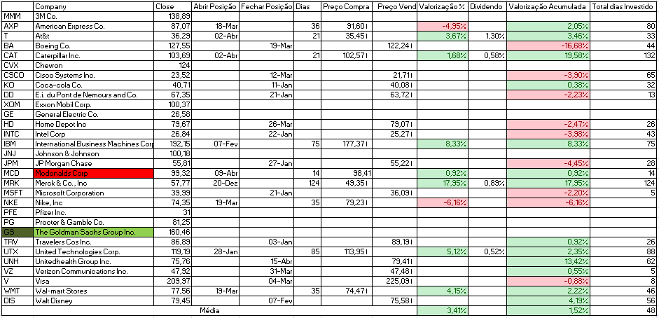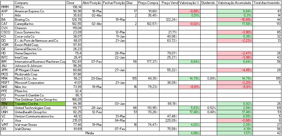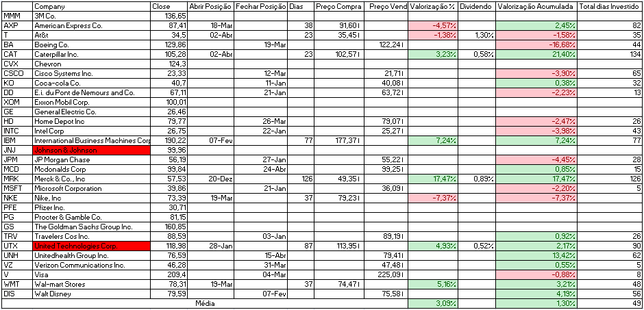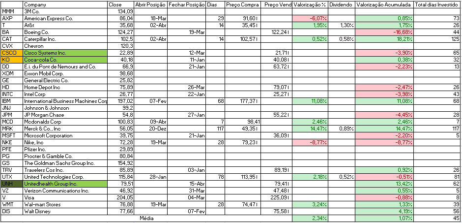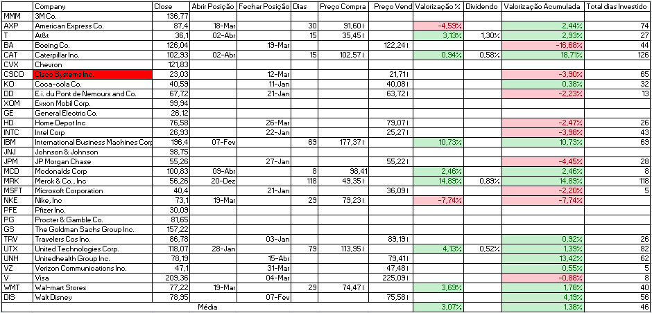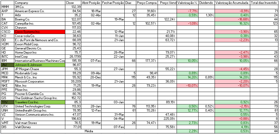Para além disso temos a indicação de venda da Cisco Systems Inc. e compra de Johnson & Johnson e Travelers Cos Inc.