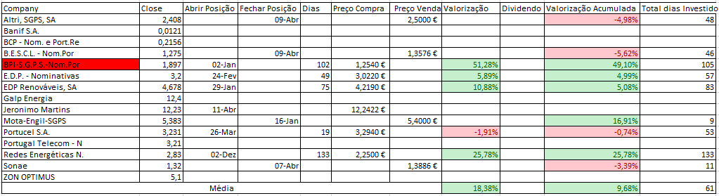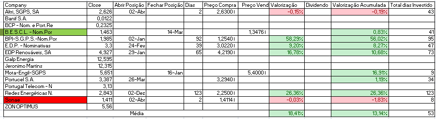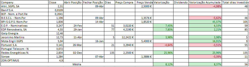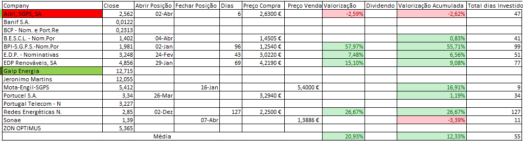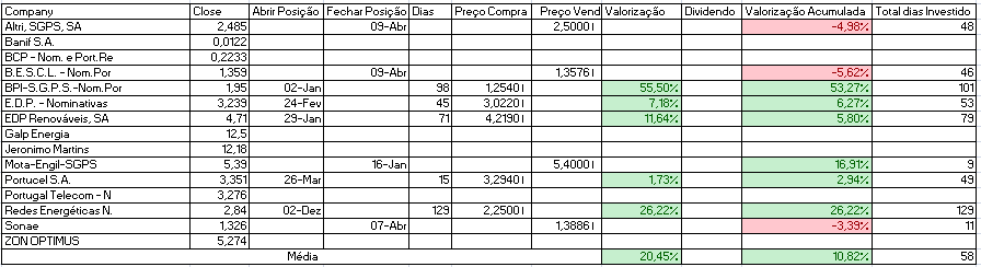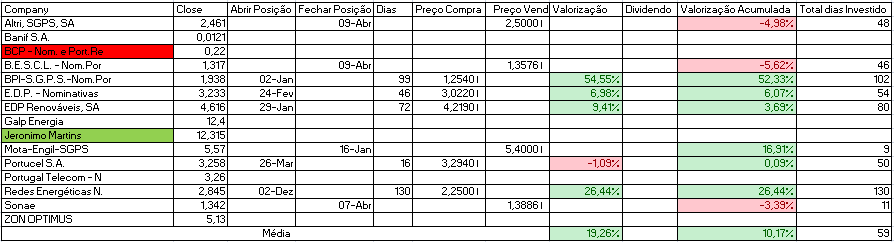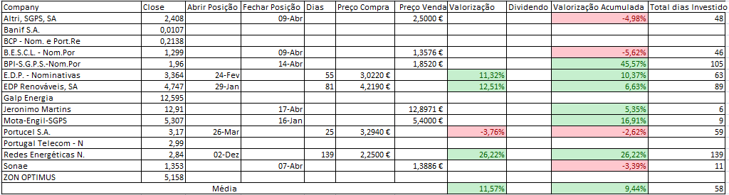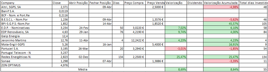 Hoje consegui contrariar a queda do PSI20 com as subidas da JMT (nada mal para primeiro dia após a compra), EDP e claro os States que hoje corrigiram/recuperam das quedas recentes.