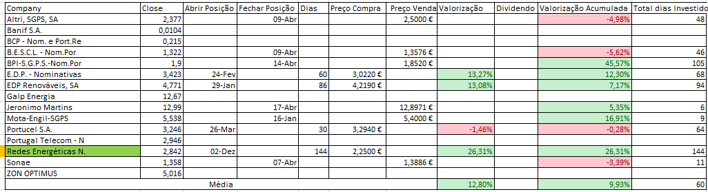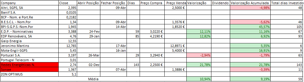 Pois hoje não vendi REN... ainda por cima lembrei-me 20 minutos antes do fecho dos mercados. Tenho verificado que nas últimas 2/3 semanas tenho falhado um pouco demais, tal deve-se certamente a uma maior pressão do quotidiano.