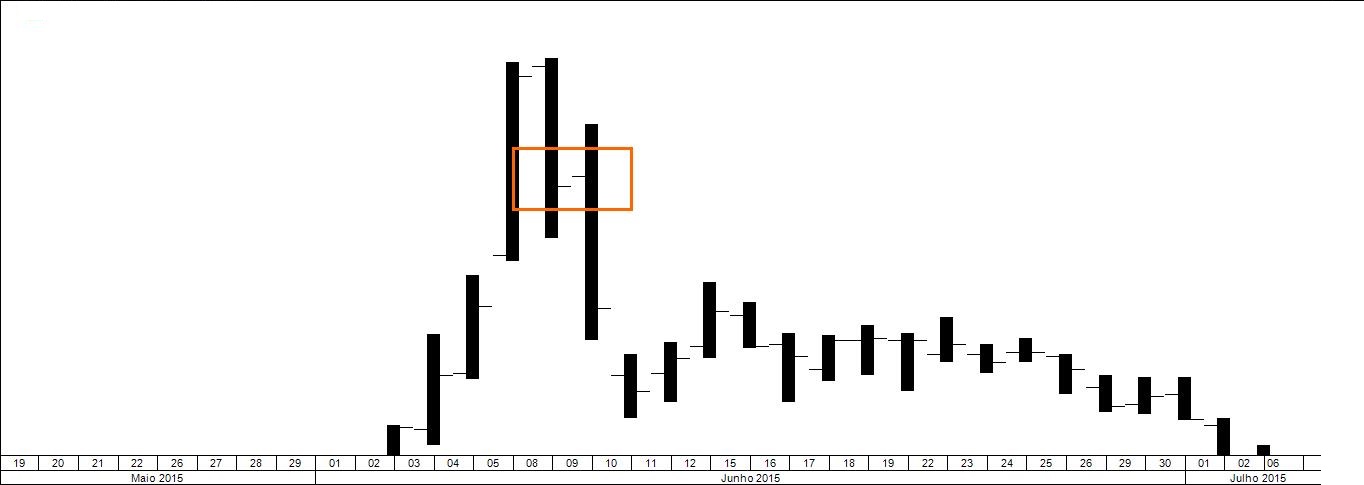 6º: Se alguém decidiu imitar-me e andou a comprá-la após a ter identificado (hás-de reparar que quando apresentei o gráfico pela 1ª vez não a identifiquei), violou toda e qualquer regra de prudência e, o que é mais grave, fê-lo não cumprindo o plano de negociação por mim apresentado, que envolveu uma entrada, um objectivo e uma perda caso corresse mal. Quem é imprudente e não segue o planeamento corre o risco de sofrer as consequências.