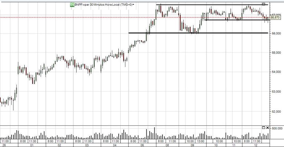 O BNP Paribas encerrou a sessão desta sexta-feira a ganhar 0,18% para os € 57,00 e segue no seu caminho rumo à poderosa resistência resistência dos € 59,00 - € 59,20.