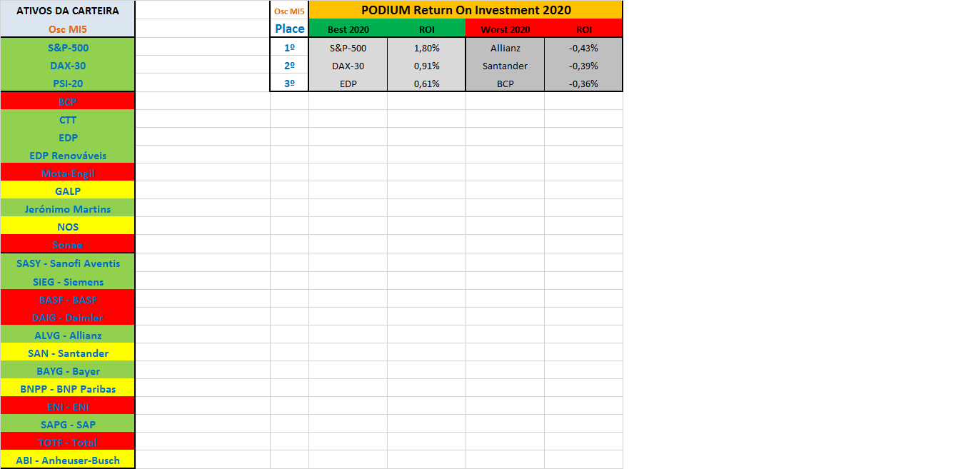 Como reage o sistema de trading “Osc MI5” a este fator de quedas mais relevantes na parte final da sessão? Muito simples, a vela de cada um dos índices nestas condições agrava as desvalorizações do dia introduzindo no programa valores absolutos superiores às desvalorizações reais registadas, como que a reforçar através do alerta desse agravamento uma eventual saída da posição mais rápida do que poderia ocorrer com a simples desvalorizaçao nominal.