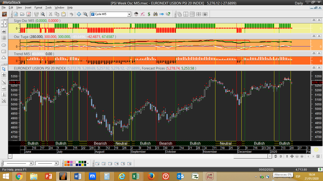 PSI – Não é transaccionável na carteira mas para outros efeitos passa de comprado a neutral, devido ao facto de ambos os ciclos de trading terem deixado de marcar um sentido ascendente.