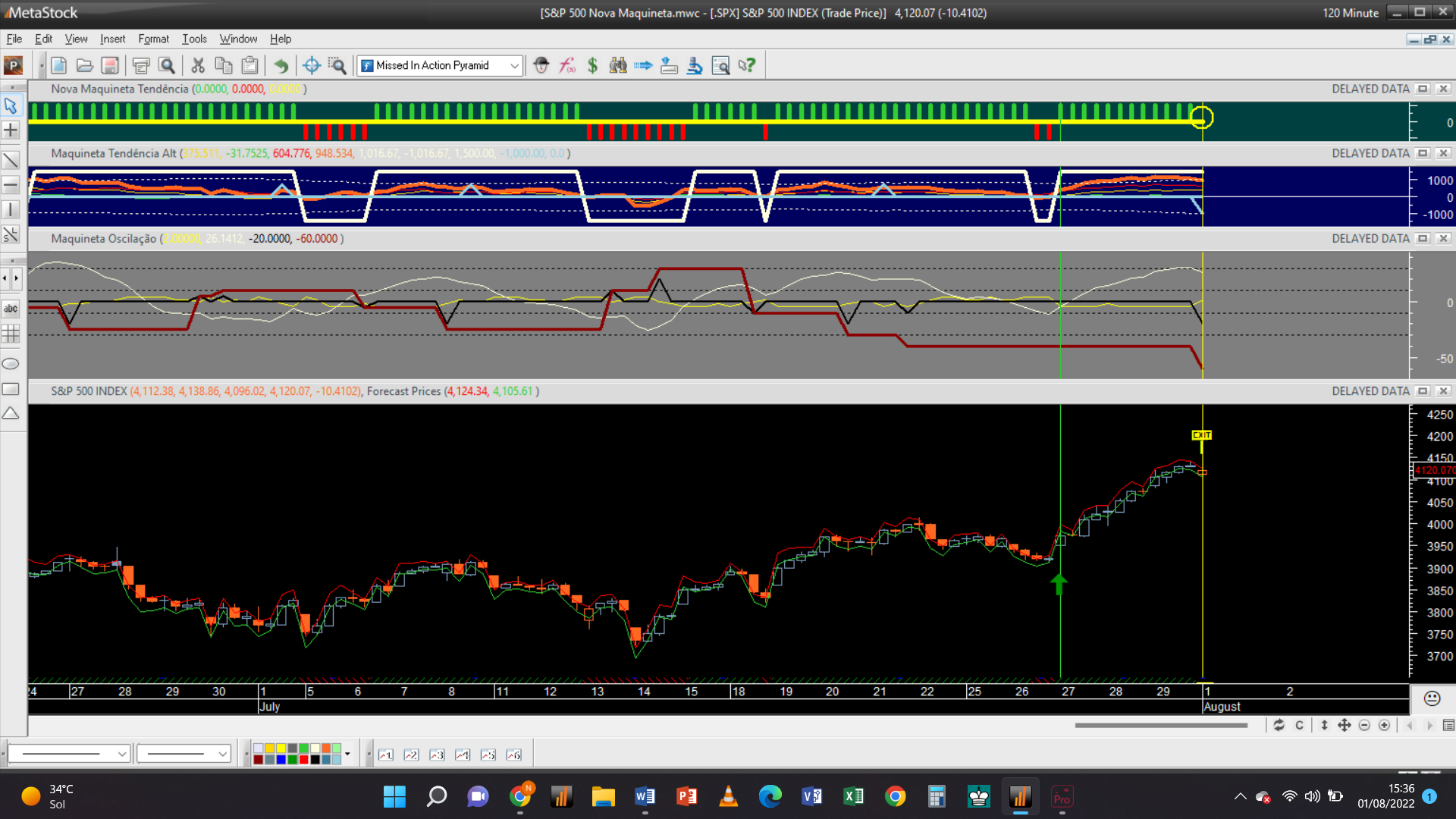 O programa começa agora a estabelecer algumas mais-valias no setor ondulatório, obrigando a fechar as posições longas oscilatórias existentes na escala mais pequena dos 30 minutos.